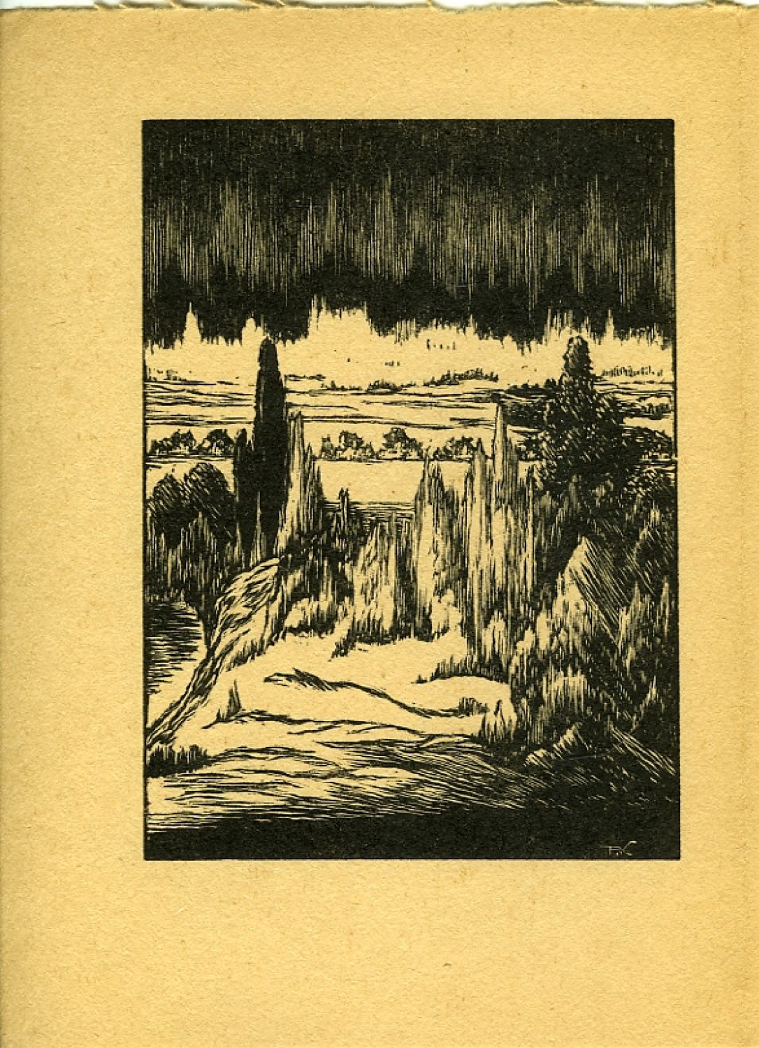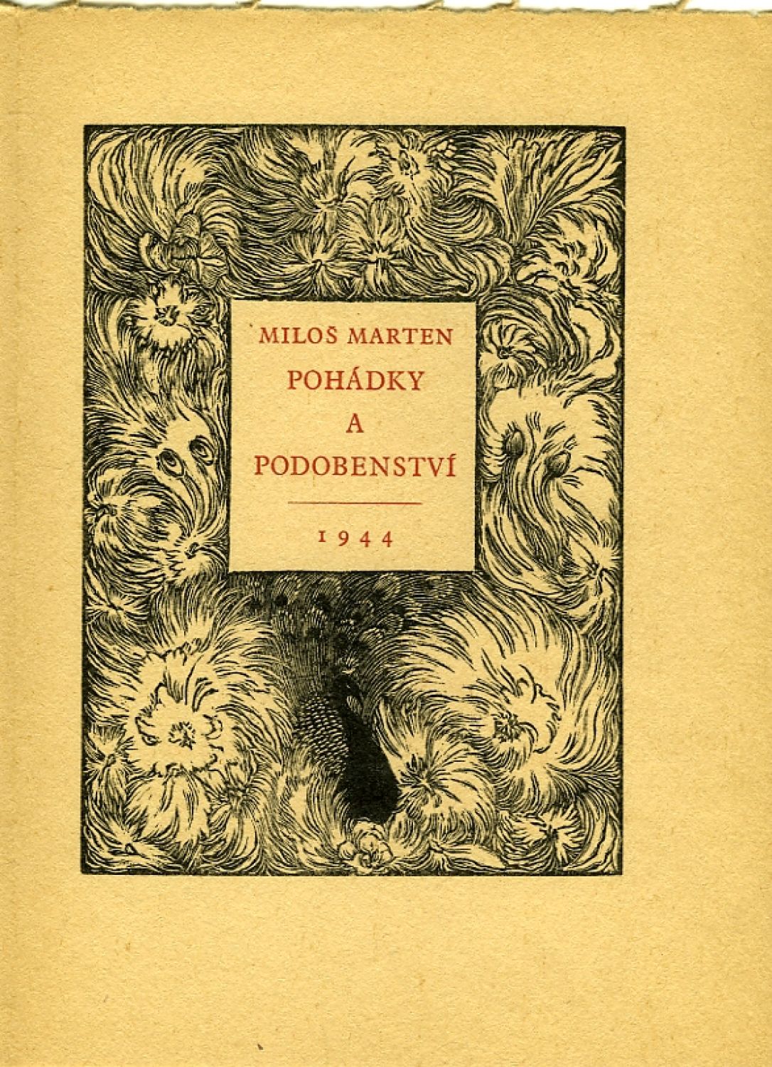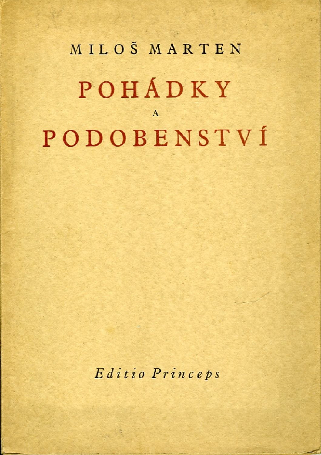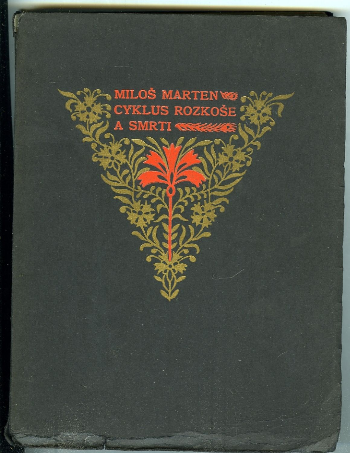 Orig. brož. s pův. zlato-červenou ilustrací a věcným názvem na přední straně a hřbetu černé obálky. Počet výtisků neudán. Lept ve front. a výzdoba Zdenka Braunerová (titul, 16 linek, 6 iniciál, 8 vignet). Černo-červený tisk. /Sáňka 251/. Meditativní novely literárního a výtvarného kritika, překladatele a beletristy Miloše Martena (vl. jménem Miloš Šebesta, 1883-1917), v nichž se autor pokusil zpodobnit vášeň, rozkoš, zlo, utrpení, zoufalství, krutost a smrt.