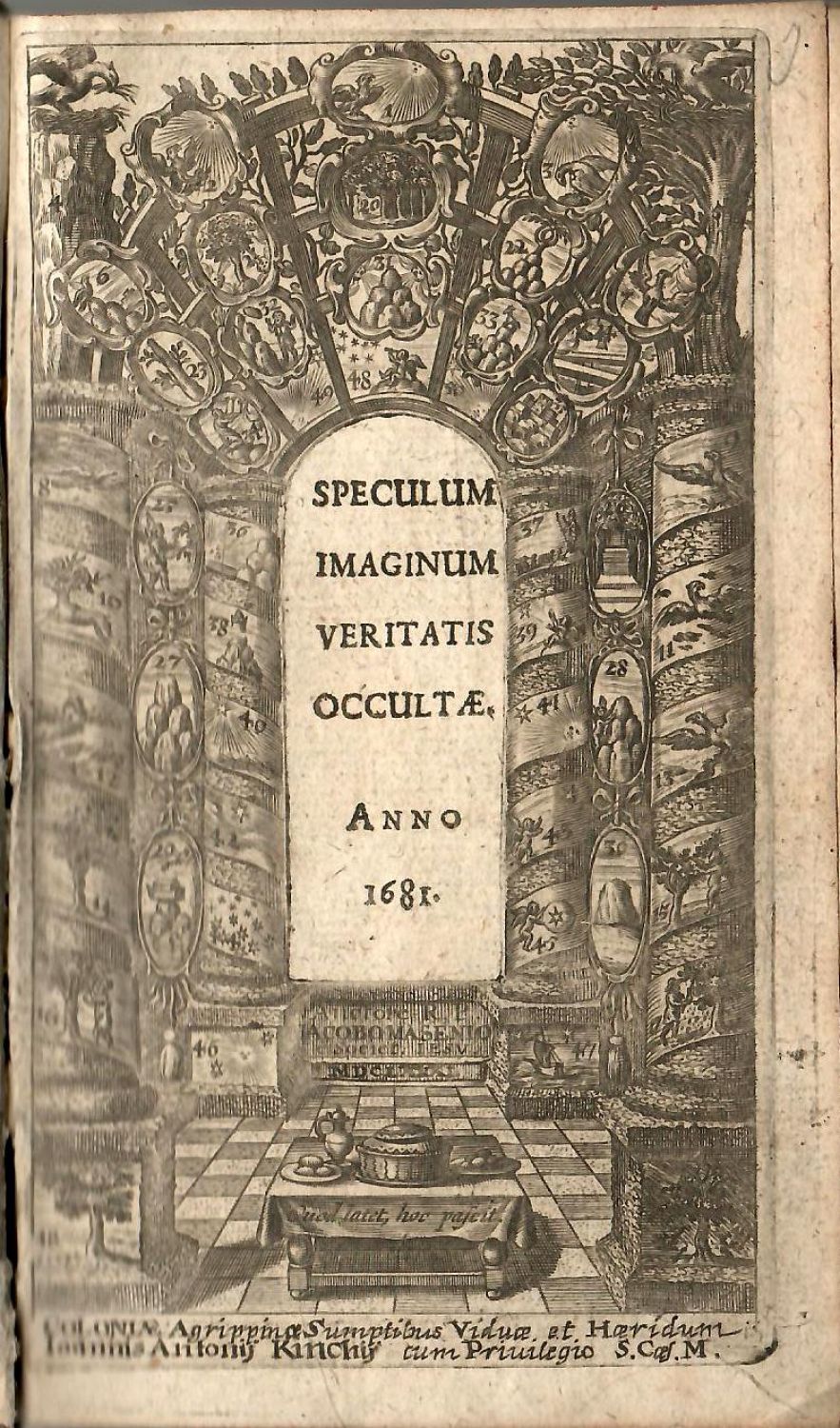 SPECULUM IMAGINUM VERITATIS OCCULTAE, exhibens SYMBOLA, EMBLEMATA, HIEROGLYPHICA, AENIGMATA, OMNI TAM MATERIAE, quam forma varietate; EXEMPLIS SIMUL, AC PRAECEPTIS ILLUSTATUM.