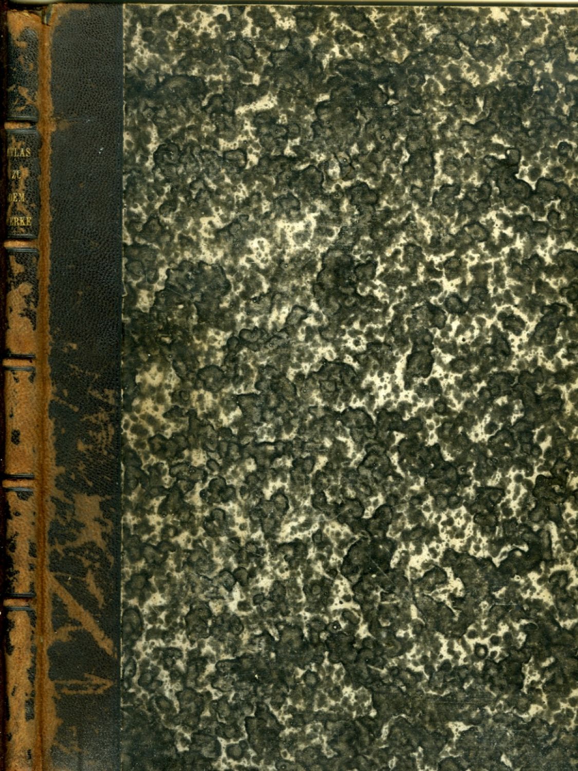 Hnědý kožený hřbet s pěti nepravýni vazy a zlac. věcným názvem silně odřený, mramorované předsádkové papíry, za přední předsádkou vazba mírně rozlepená, listy vprostřed lehce vertikálně pomačkané. - Textový svazek chybí.