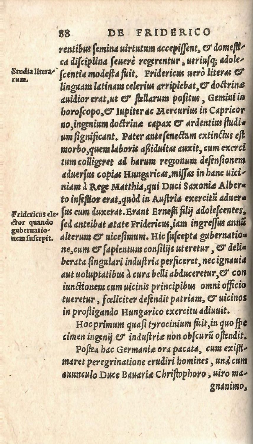 Latinský text tištěný pokurzívou a antikvou, řecký alfabetou, živá záhlaví, tištěné poznámky po stranách. Konturové iniciál ve dvojitém jednoduchém rámečku na pozadí z rostlinného ornamentu zalomené do výše 6-7 řádků, tučně tištěné versálky ve výši 2 řádků. Na titulním listu signet tiskařův. V úvodu předmluva Caspara Peucera datovaná ve Wittenbergu roku 1557.