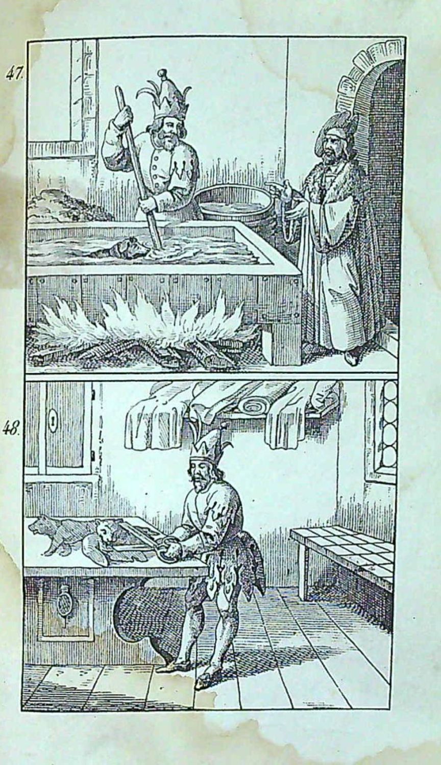 Kartonová vazba z počátku 20. století s deskami potaženými mramorovaným papírem, přes horní okraj hřbetu přelepeno torso pap. štítku, na titulním list razítko zednářské lóže "Drei Cedern Stuttgart", za textem přivázány dva listy se 4 mědirytinami, které nemají souvislost s obsahem knihy.