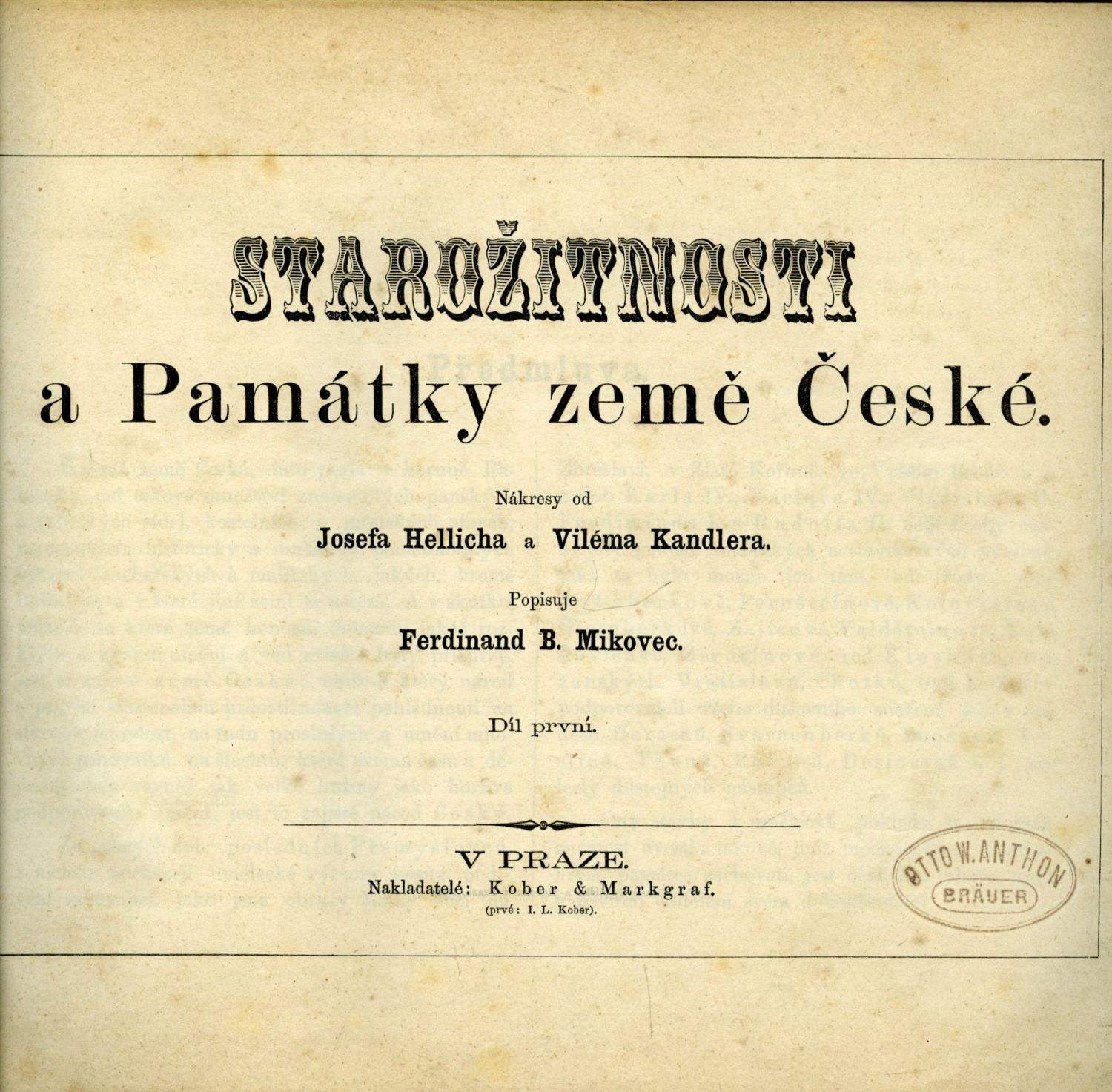 Starožitnosti a Památky země České. ... Díl první + druhý.