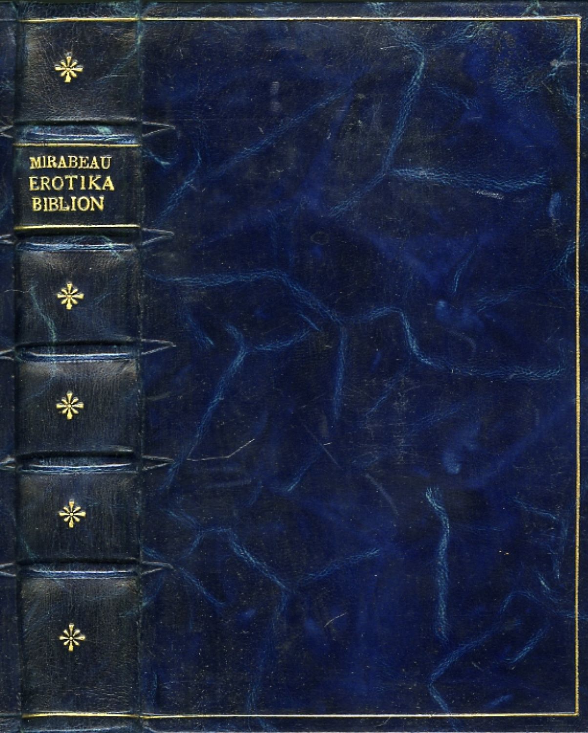 Honoré Gabriel hrabě de Mirabeau (17.3.1749 - 2.4.1791 Paříž), vynikající řečník a politik, jedena z nejvýznamnějších postav Velké francouzské revoluce, zasazoval se o konstituční ústavu a odmítal zbytečné násilí. Naštěstí pro něj zemřel dříve než se revoluce proměnila v krvavá jatka, po jeho smrti ho jakobíni prohlásili za zrádce revoluce a nechali jeho ostatky odstranit z Pantheonu. "Erotika Biblion", vyšla poprvé anonymně roku 1775 V Neuchatelu ve Švýcarsku. Toto vydání je opatřeno bibliografií předchozích vydání z pera Chevaliera de Katrixe a předmluvou. Za autorovým komentářem ke knize, následuje 10 kapitol s autorovými úvahami o onanismu, homosexualitě, lesbické lásce, sodomii, obřízce, různých formách prostituce apod., doprovázené autorovými filosofickými reflexemi.