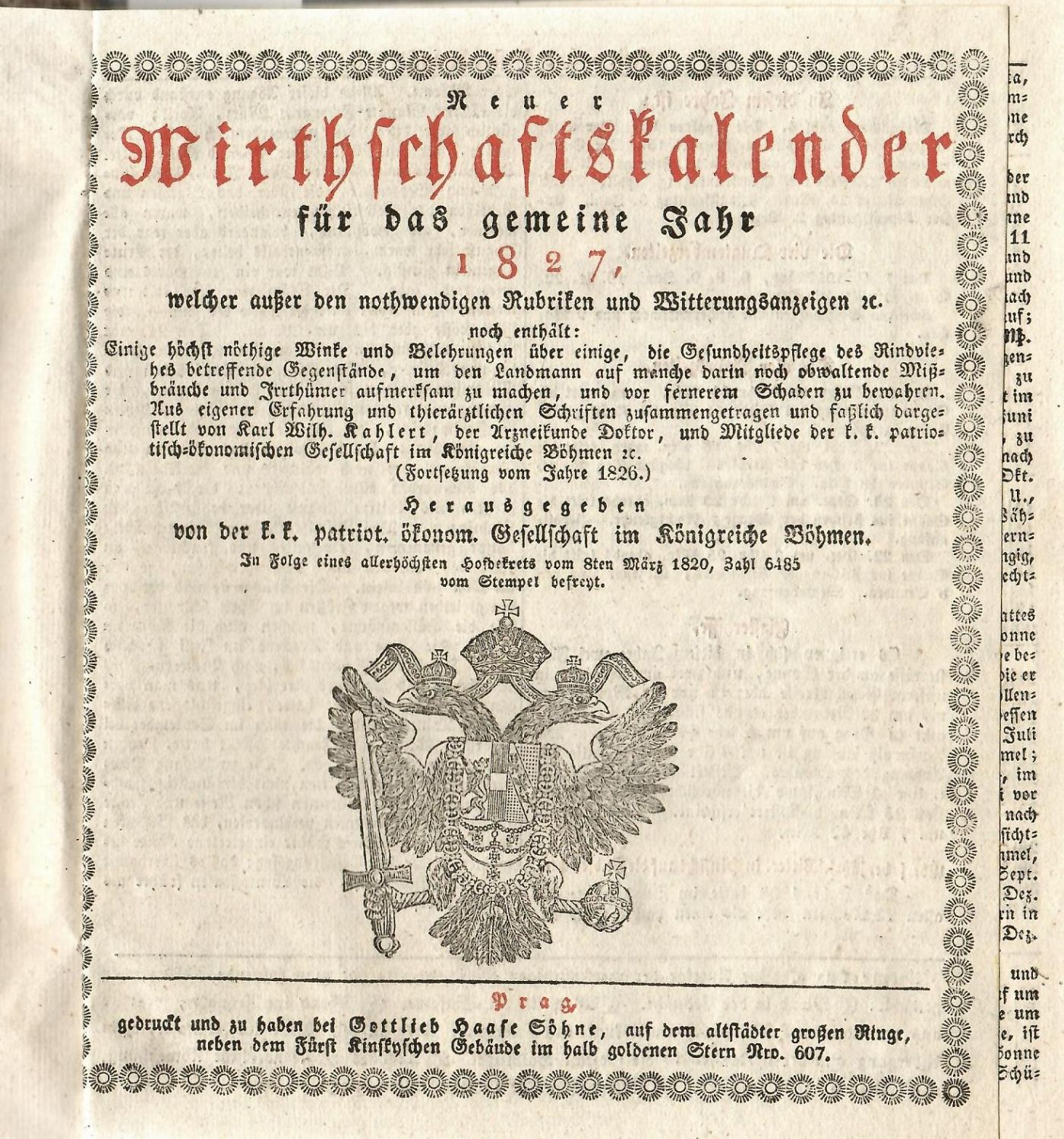 Tit. viněta - dřevořez císařské orlice.