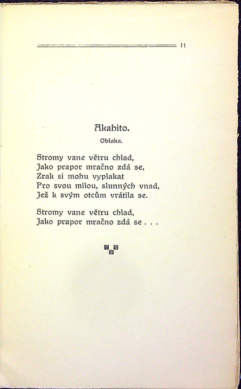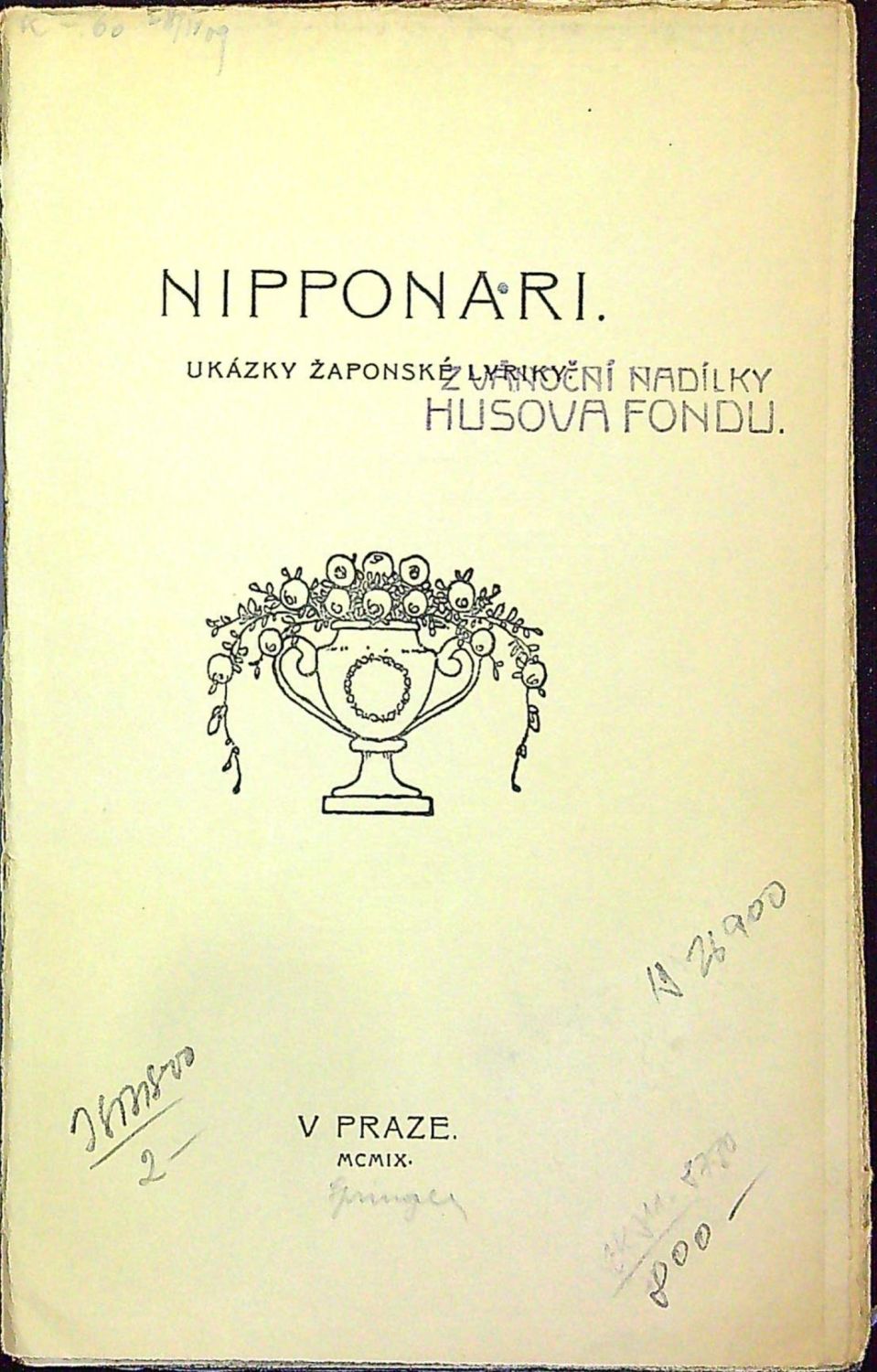 Jeden ze 400 vydaných exemplářů, tisk Em. Stivín. Dle anthologií Paula Enderlinga, Karla Florenze, Otty Hausera a j. přeložil, informačním úvodem a poznámkami opařil Emanuel z Lešehradu. Na tit. listu a jeho rubu viněty. - Původní pap. vazba při okraji přední strany lehce potrhaná, na zadní straně mírně vyšisovaná, při horním i spodním okraji hřbetu chybí kousek pap. pokryvu. Na tit. listu razítko "Z vánoční nadílky Husova fondu", na patitulu rkp. poznámky tužkou o knižních fondech, ve kterých se knížka nalézá.