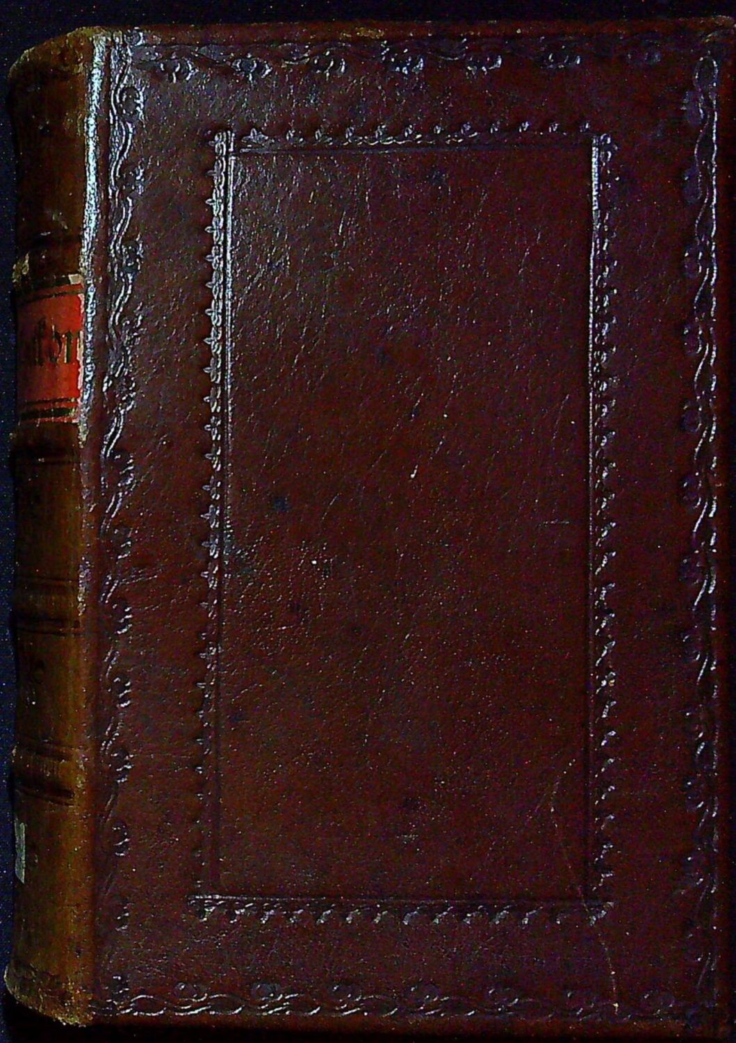 Kožená vazba z hnědé hověziny, na obou deskách tlačený rám z rostlinného ornamentu, uvnitř rámu tlačené zrcadlo z drobného ornamentu, ve hřbetu 4 vazy, ve druhém poli červený kožený štítek s tlačeným a zlaceným názvem, v ostatních polích tlačený rostlinný ornament, řerveně barvené ořízky. Tit. list lehce zašpiněný, při vnitřním okraji vyspravený dolitím papíru, při spodním okraji mírně okousaný, papír rejstříku zahnědlý.