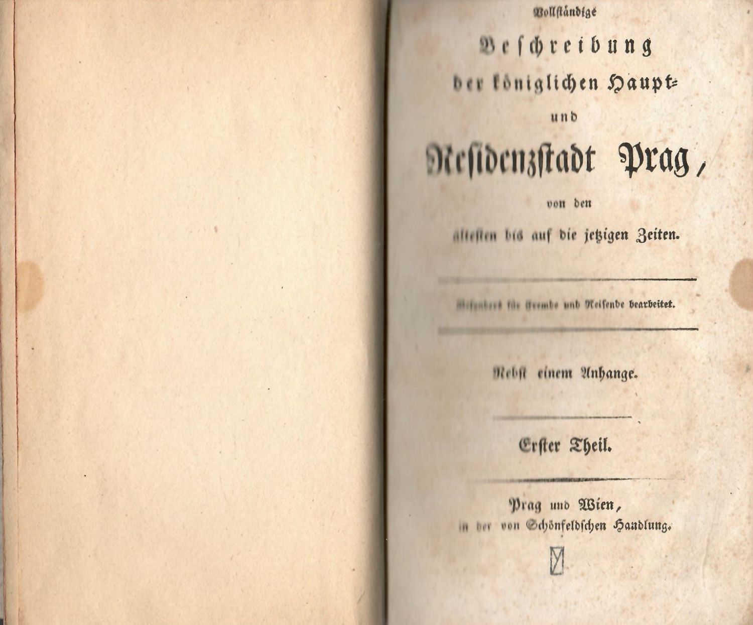 Vollständige Beschreibung der königlichen Haupt- und Residenzstadt Prag, von den ältesten bis auf die jetzigen Zeiten. Besonders für Fremde und Reisende bearbeitet. Erster - ZweyterTheil .