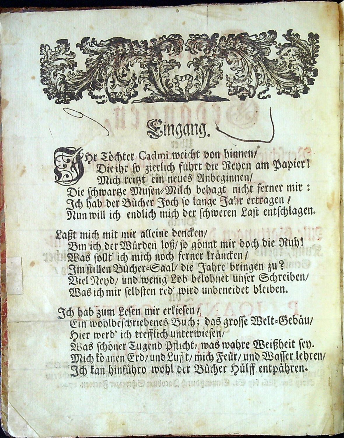 Sammlung Geist = und Sinnreicher Gedancken, Uber Verschiedene aus der Natur, Kunst, und Wissenschfften vorgestellte Sinn = Bilder Durch Alle Gattungen der Hoch = Teutschen Reim=Kunst, theils zur Tugendsamen Lehr, und nutzlicher Gemüths=Ergötzung, theils zu angenehmen Gesang, im Druck heraus gegeben, von .... I. až IV. díl