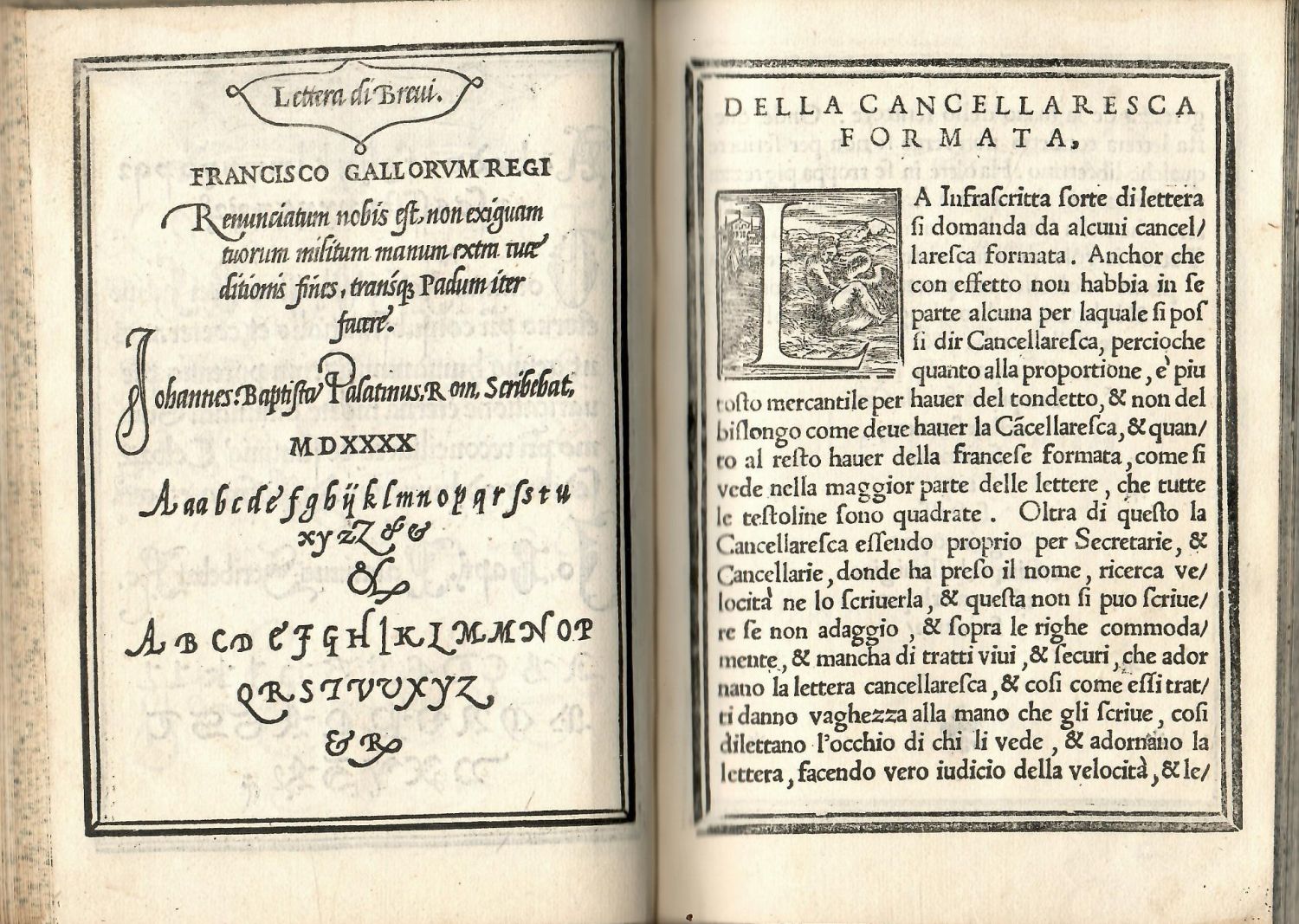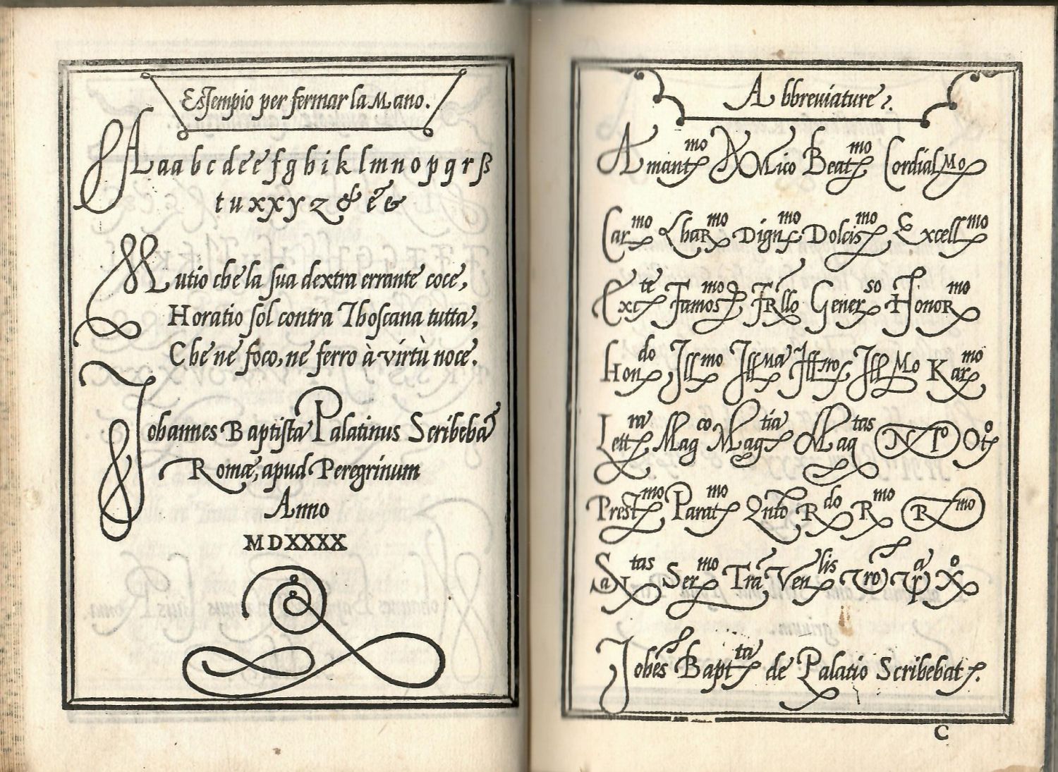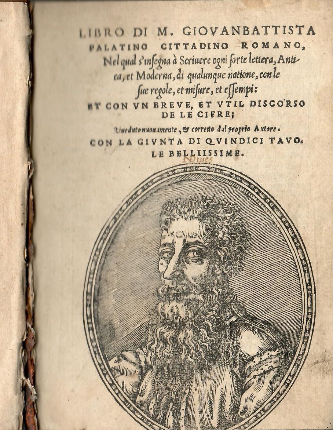 LIBRO DI M, GIOVANBATTISTA PALATINO CITTADINO ROMANO, Nel qual s´insegna á Scriuere ogni sorte lettera, Antica, et Moderna, di qualunque natione, conle sue regole, et misure, et essempi: ET CON VN BREVE, ET VTIL DISCORSO DE LA CIFRE; Riueduto muonumente, et corretto dal proprio Autore. CON LA GIVNTA DI QVINDICI TAVO, LA BELLIISSIME.