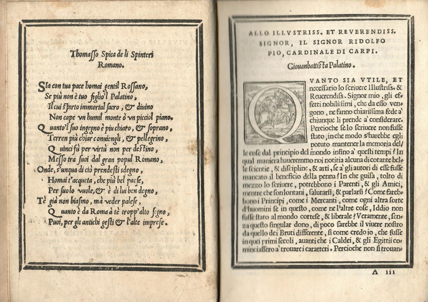 Giovanni Battista Palatino (cca 1515 Rossano v Kalábrii - cca 1575 Řím) významný italský kaligraf, nabízené dílo je jedním z nejvýznamnějších renesančních pojednání o kaligrafii a umění psát. Na jeho počest bylo jeho jménem pojmenované patkové písmo, které navrhl a v roce 1948 vydal Hermann Zapf. První vydání vyšlo roku 1545.