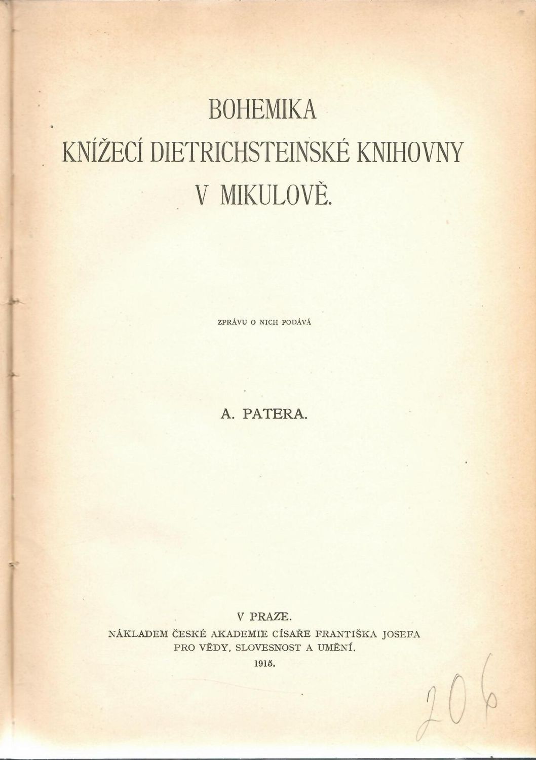 Bohemika knížecí Dietrichsteinské knihovny v Mikulově.