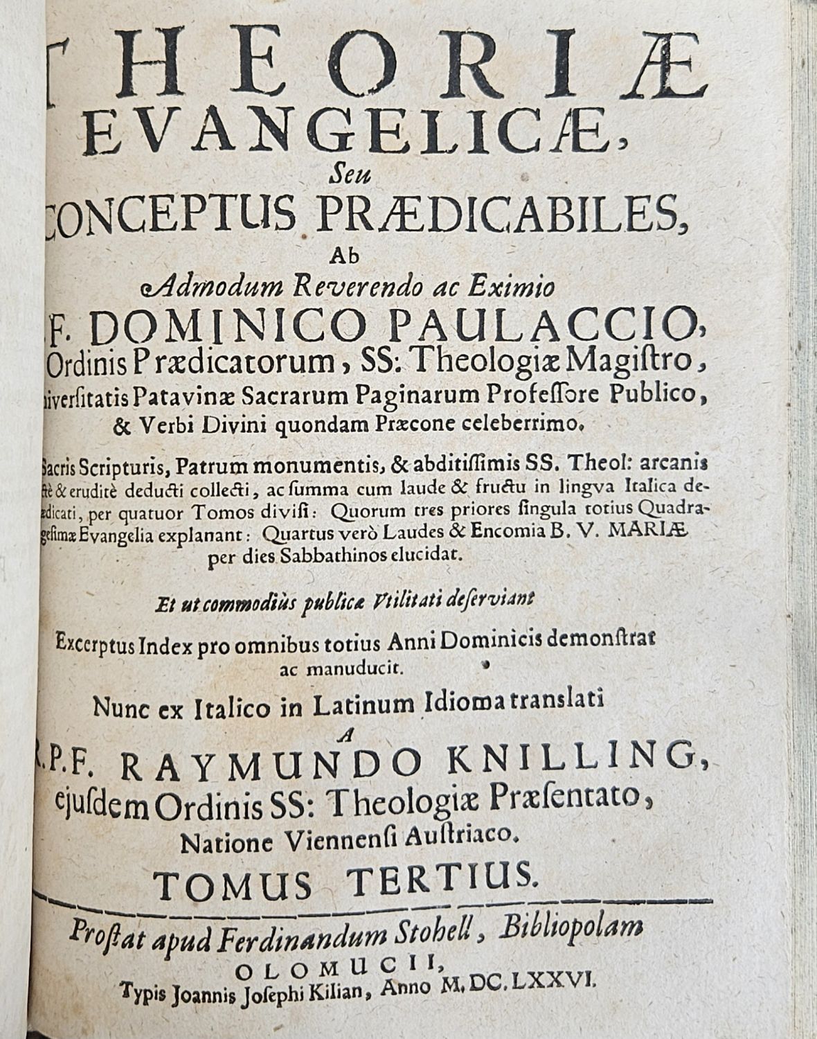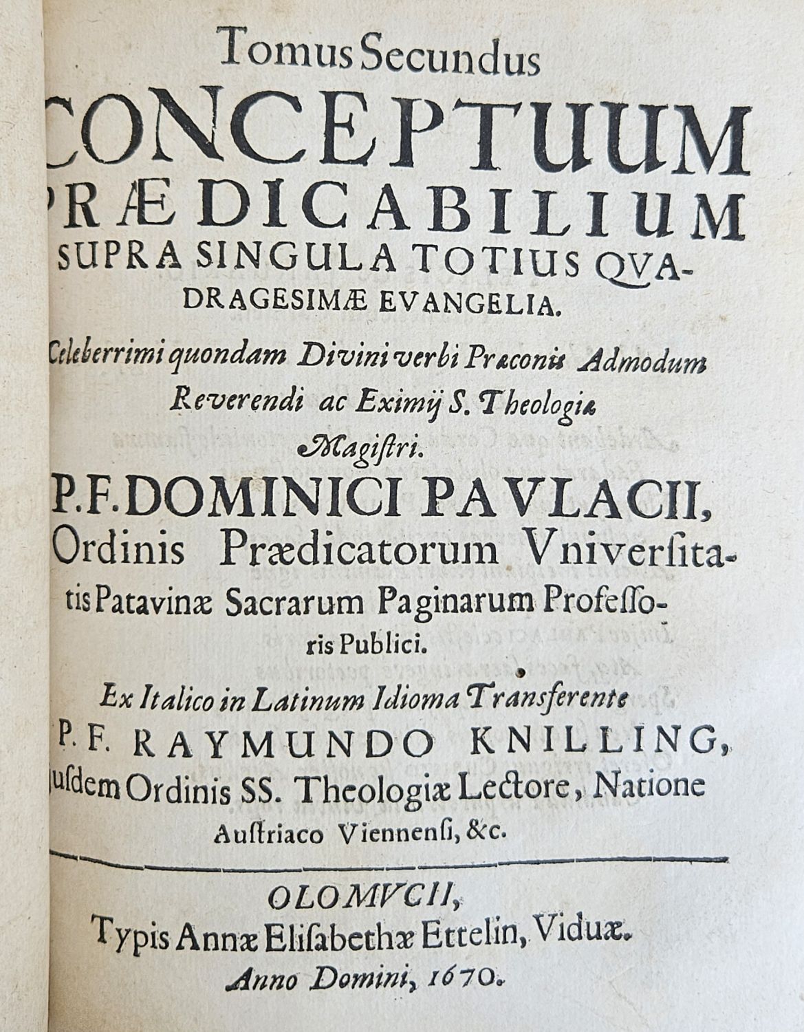 CONCEPTUUM PRAEDICABILIUM SUPRA SINGULI A TOTIUS QVADRAGESIMAE EVANGELIA. Celeberrimi quandam Divini verbi Praeconis Admondum Reverendi ac Exiij S. Theologia Magistri P. F. DOMINICI PAVLACII, S. Ordinis Praedicatorum Vniversitatis Patavinae Sacrarum Paginarum Professoris Publici.