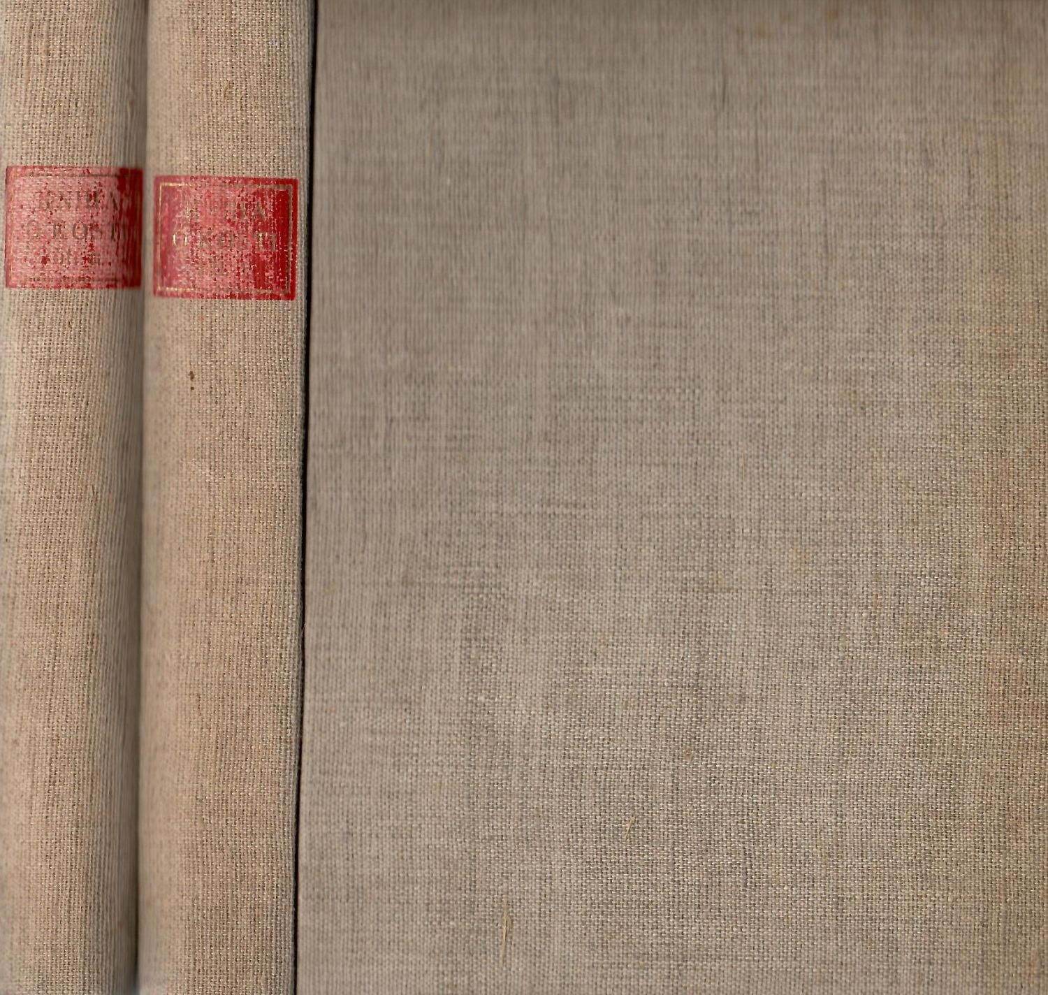 Na hřbetech odřený zlac. věcný název v červeném poli, tmavé svrchní ořízky. Frontispis 1. dílu odlepený, průhledný papír kryjící front. 2. dílu pomačkaný, jinak dobrý stav.
