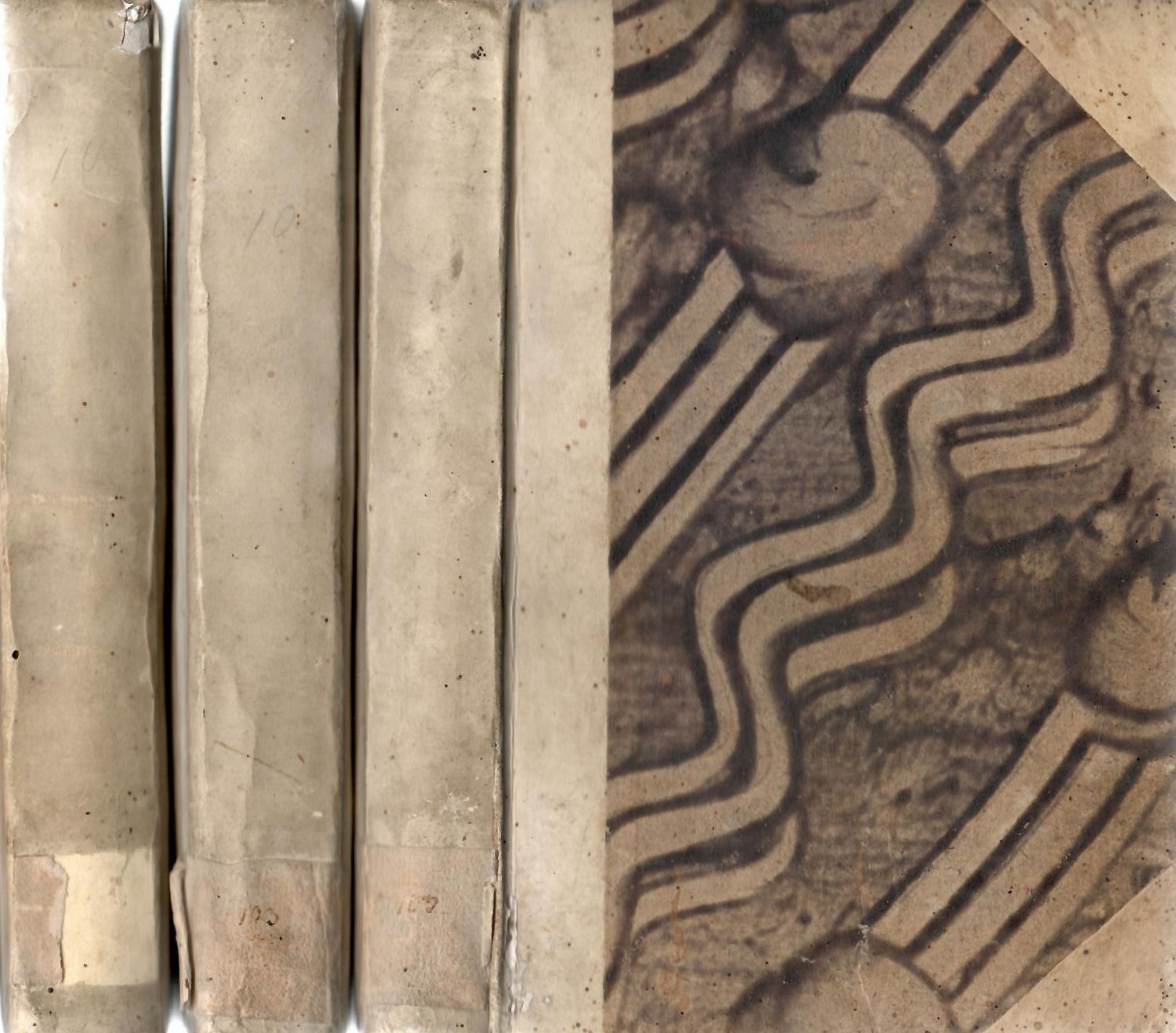 Dobové jednotné vazby s kartonovými deskami potaženými škrobovým papírem, pergamenové hřbety a nárožnice, červeně barvené ořízky, při spodních okrajích hřbetů nalepeny čisté pap. štítky, u prvního dílu při horním okraji hřbetu vazba mírně natržená, ve třetím dílu poslední dva listy při spodním okraji mírně proděravělé od červotoče, ve druhém dílu chybí jedna mědirytina (portrét skladatele Franze Thumy), jinak ve stavu velmi dobrém. (Čtvrtý a poslední díl vyšel roku 1782).
