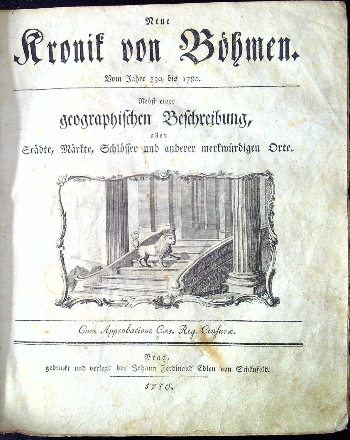 Neue Kronik von Böhmen. Vom Jahre 530, bis 1780. Nebst einer geographischen Beschreibung, aller Städte, Märkte, Schlösser und anderer merkwürdigen Orte.