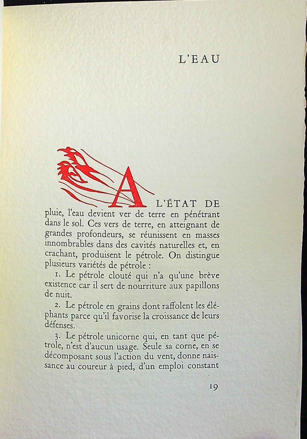 Exemplář č. 47 z 252 (krom toho vyšlo ještě 21 ex. pro spolupracovníky značených A až U). Tištěno na ruční papír d´Auvergue z papírny Richard de Bas mistrem tiskařem Antoinem Ricem, suché jehly vytiskl G. Leblanc v Paříži a kolorovala Toyen. Červeně tištěný titul a plné iniciály s vegetativním dekorem.