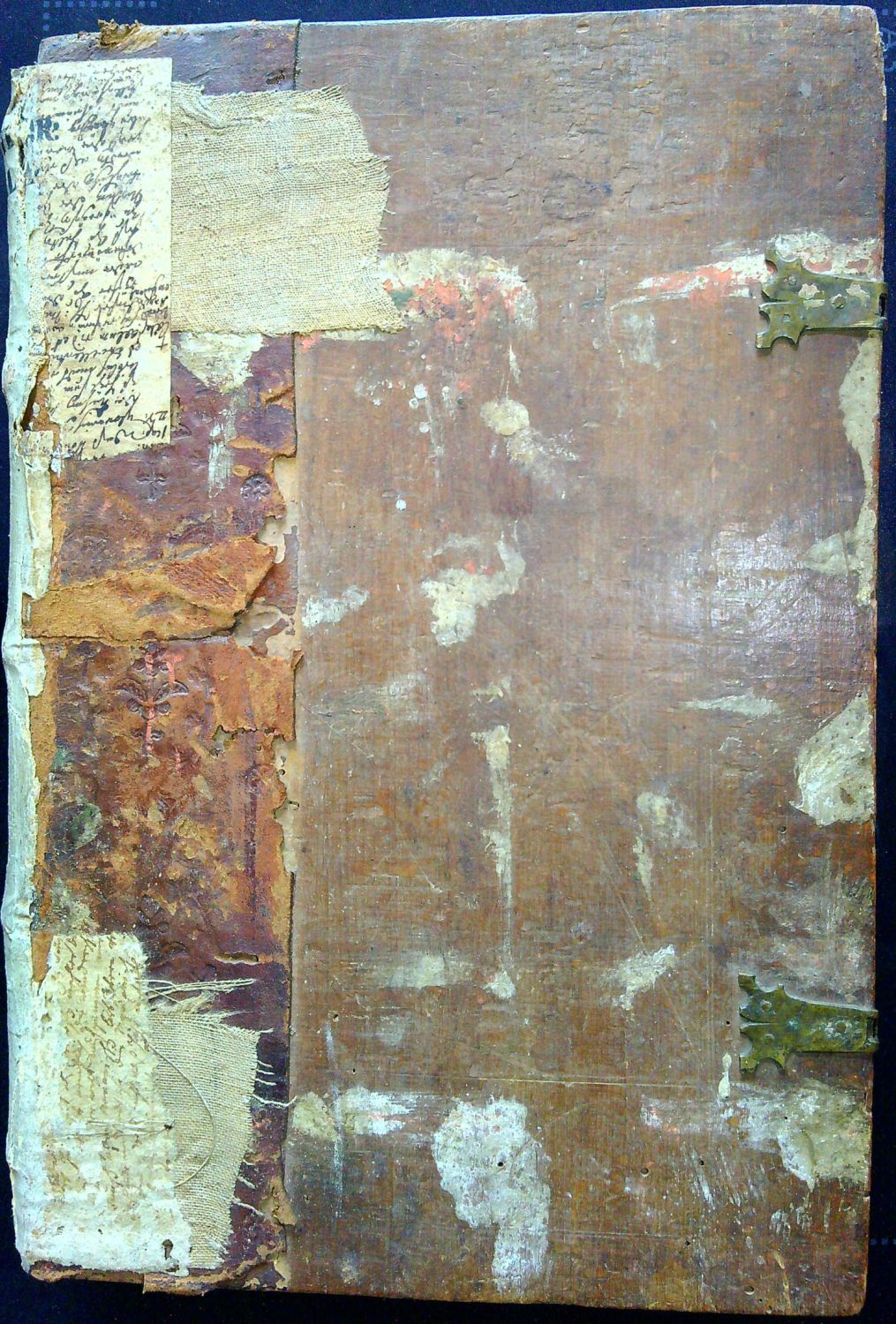 Dobová vazba s deskami z bukového dřeva, ve hřbetu a na deskách u hřbetu v šíři cca 8 cm dobový kožený pokryv. Na přední desce dva kovové úchyty. Při spodním i horním okraji obou desek v části koženého pokryvu nalepeny papíru s rukopisnými poznámkami v německém jazyce z 18. století. Pokryv hřbetu potažen šedě natřeným papírem (znak kapucínské klášterní knihovny) s černě a červeně psaným názvem, číslem evidenčním a červeně malovanou kartuší. Na titulním listu provenienční záznam "Loci Capucinorum Satecii (Žatec) 1733", při spodním okraji přeškrtnutý provenienční záznam z roku 1691 "Daniel ?", při spodním okraji následujícího listu opět záznam žateckých kapucínů. Podél vnitřního okraje hřbetu vevázán jako makulatura pruh rukopisu na pergamenu v šíři cca 5 cm.
