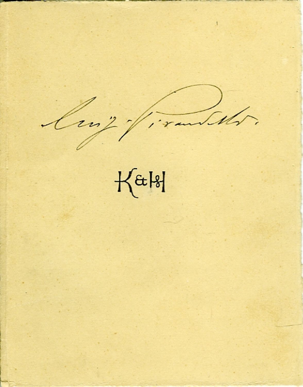Nedatovaný podpis černým perem na ústřižku papíru 158 x 124 mm s tištěnými iniciálami K&H. - Luigi Pirandello (1867 Agrigento - 1936 Řím), italský dramatik, prozaik a básník, nositel Nobelovy ceny za literaturu za rok 1934.