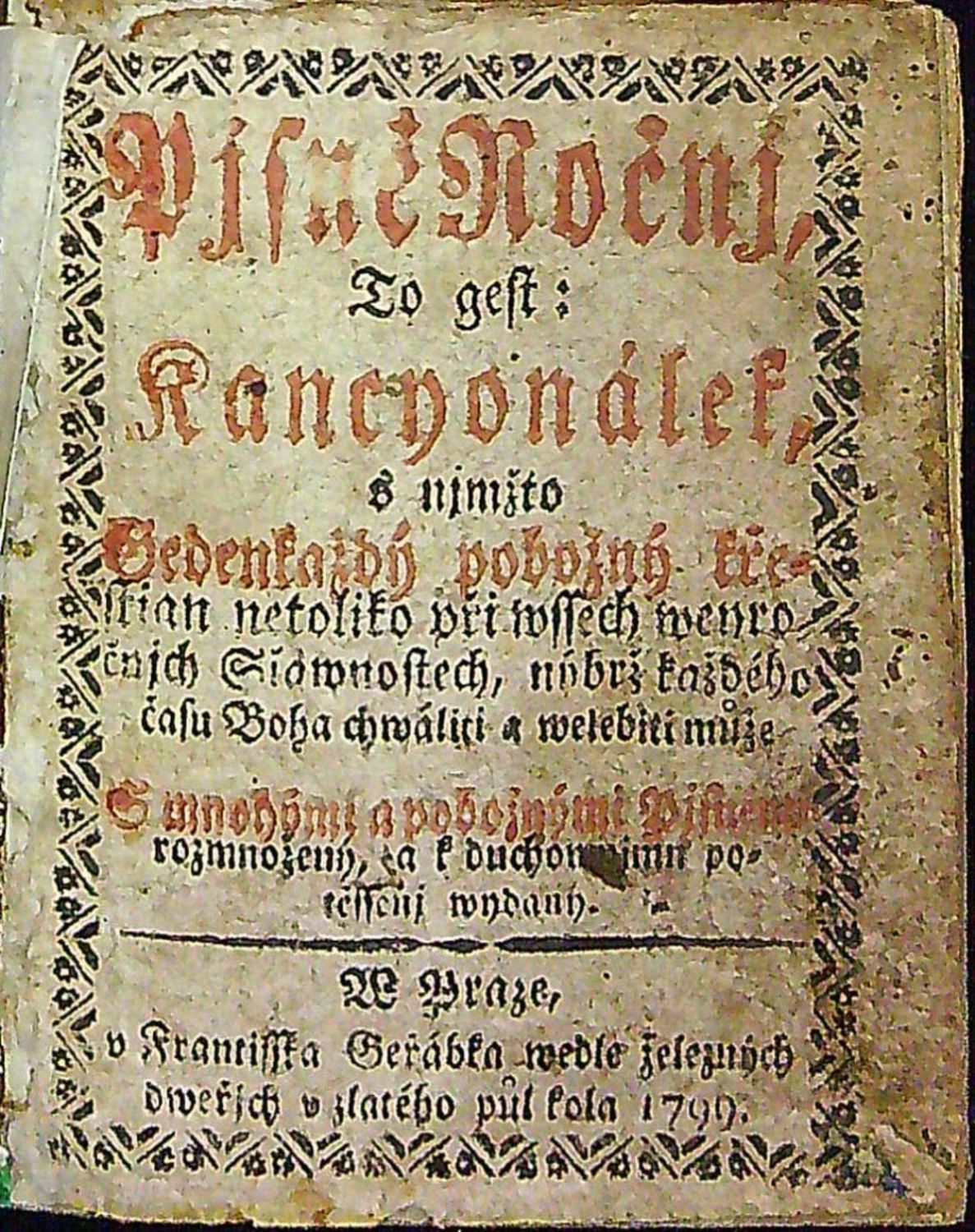 Pjsně Ročnj, To gest:Kancyonálek, s njmžto Gedenkaždý pobožný křestian netoliko při wssech weyročnjchSlawnostech, nýbrž každého času Boha chwáliti a welebiti může. S mnohými a pobožnými Pjsněmi rozmnožený, a k duchownjmu potěssenj wydaný.