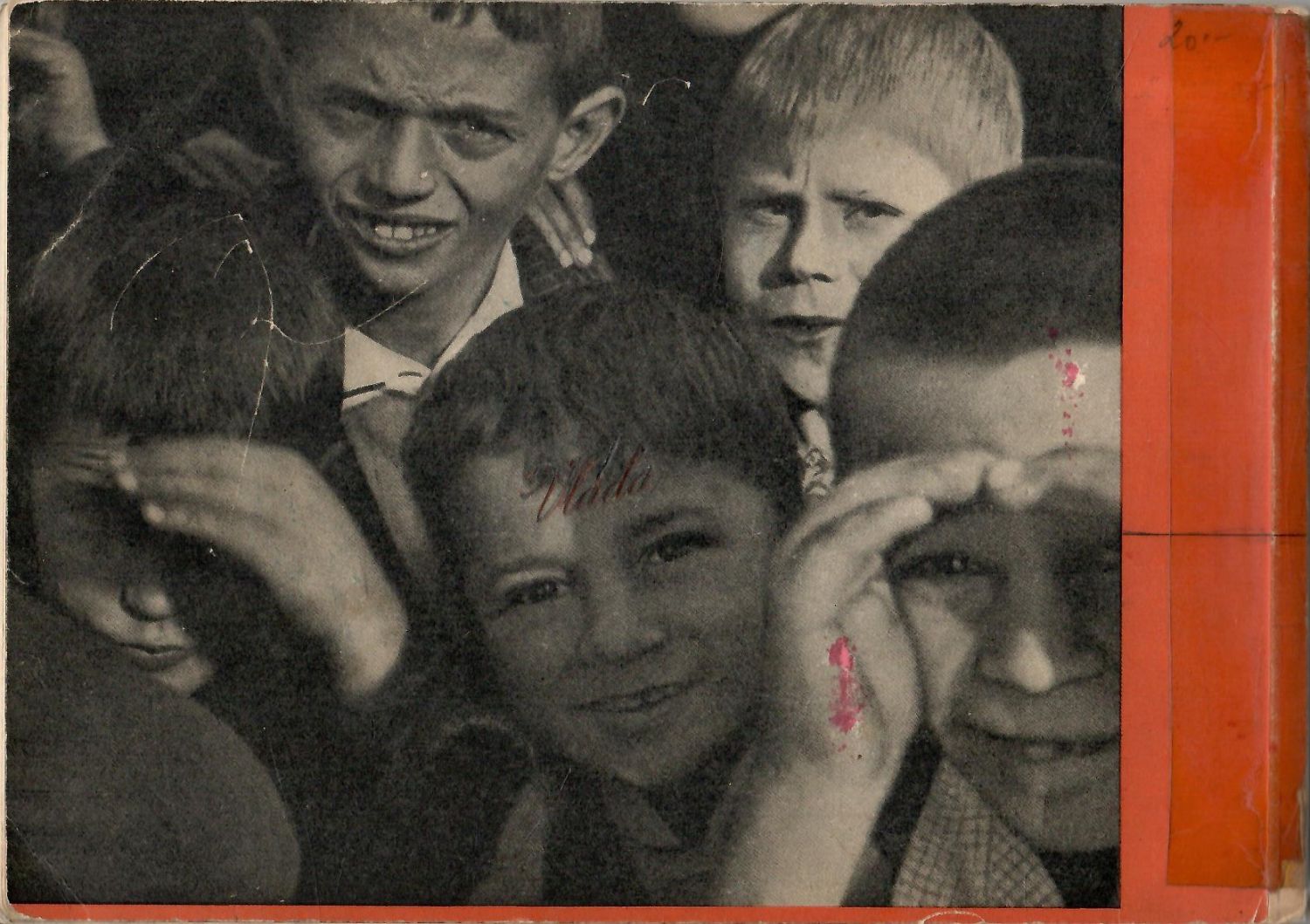 Původní obálka z tužšího papíru, na přední straně Rossmannova fotomontáž, na zadní straně fotografie. Podlouhlá 8° (150 x 217 mm), graficky upravil a montážemi vyzdobil Zd. Rossmann, vytiskla Typia Brno Cejl, úvodní fotomontáž s kresebnou koláží citlivě kolorována. - Původní obálka přes hřbet přelepená průsvitnou plastovou páskou, při horním okraji hřbetu chybí kousek pap. pokryvu (cca 1 cm), spodní okraj lehce natržený, přední strana obálky při vnějším okraji lehce odřená.