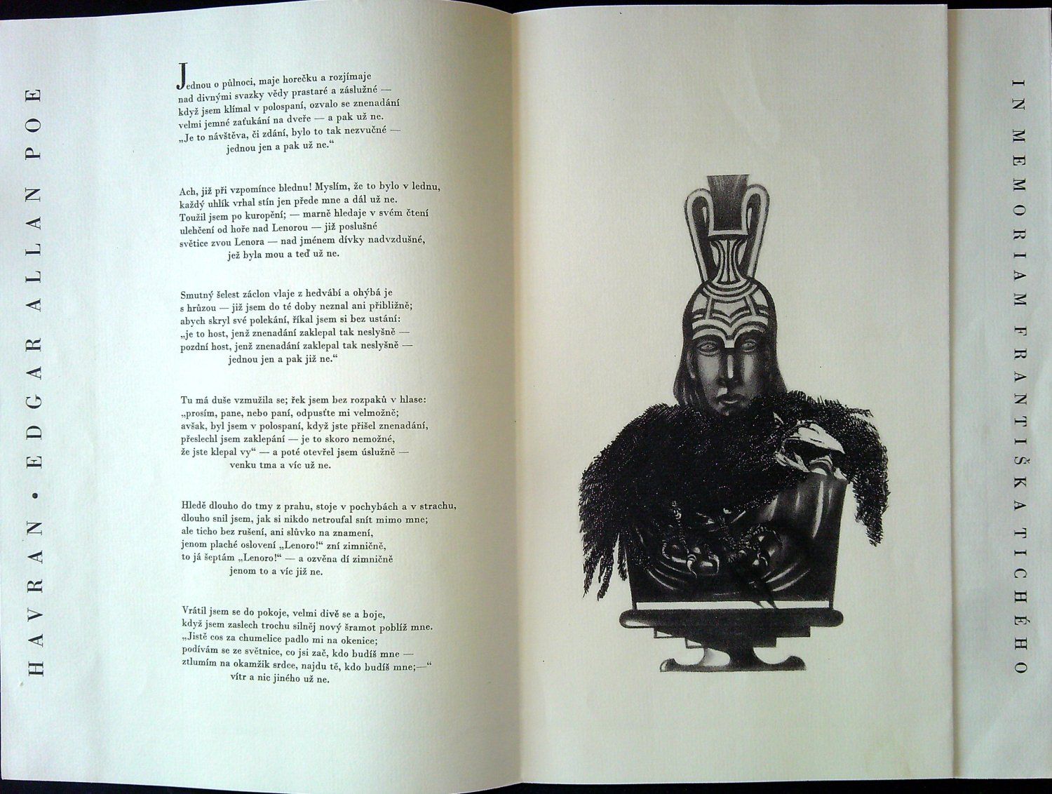 Ex. č. 3 z 60 čísl. výtisků přednostního vydání na pap. Fabriano, ilustracemi vyzdobil F. Tichý. Pův. pap. obálky, mírně zvlněné, uvnitř obálek vloženy volné, nerozřezané archy, původní karton. krabice s ilustrací F. Tichého, ve stavu dobrém. První svazek je reprintem soukromého tisku Julie Fučíkové z roku 1954 v překladu Kamila Resslera, svazek druhý je vydání nové, též s ilustracemi Tichého, v překladu V. Nezvala.