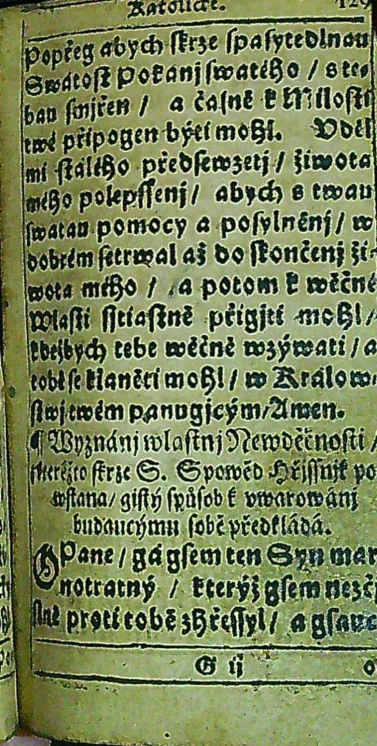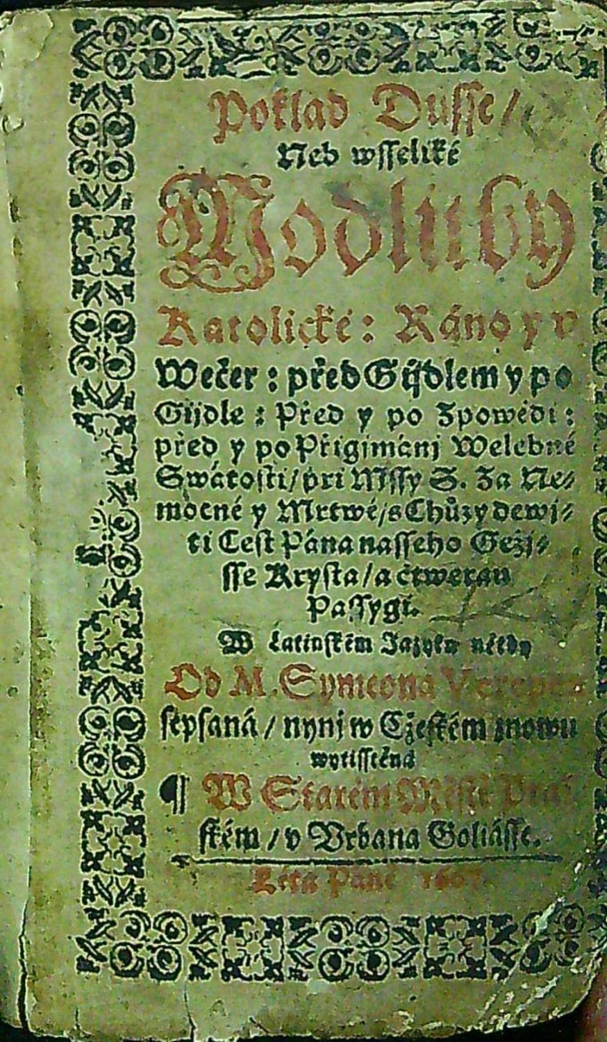 Poklad Dusse/, Neb wsseliké Modlitby Katolické: Ráno y v Wečer: před Gijdlem y po Gijdle: Před y po Zpowědi: před y po Přigjmánj Welebné Swátosti/ při Mssy S. Za Nemocné y Mrtwé/ s Chůzy dewjti Cest Pána nasseho Gežjsse Krysta/ a čtwerau Passygj. W Latinském Jazyku někdy Od M. Symeona