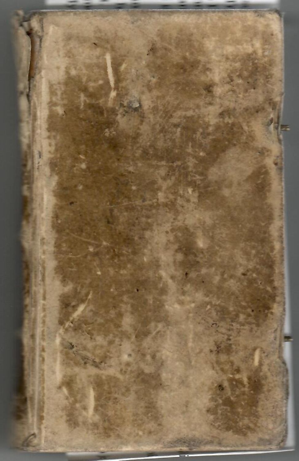 Dobová pergamenová vazba, na přední desce dva trny, přezky a spony chybí, ve hřbetu tři vazy, při horním okraji hřbetu dobový rkp. název, vazba ohmataná a odřená, při horním okraji u hřbetu prasklá. Na tit. listu provenienční záznam z roku 1706 "Bibliotheca S. Annensis Scholar Piarum".