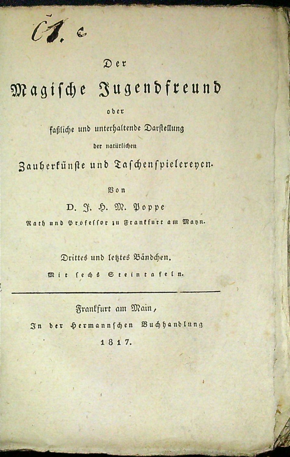 Der Magische Jugendfreund oder fastliche und unterhaltende Darstellung der natürlichen Zauberkünste und Taschenspielereyen. I.-III. Band (cmplt.)