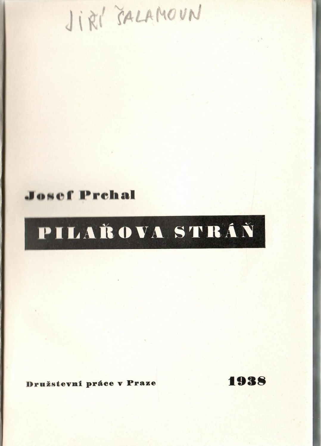 Kniha s původním papírovým obalem, který je při okrajích místy natržen. Horní roh přední desky lehce naražen. Na titulním listu tužkou podpis Jiřího Šalamouna.