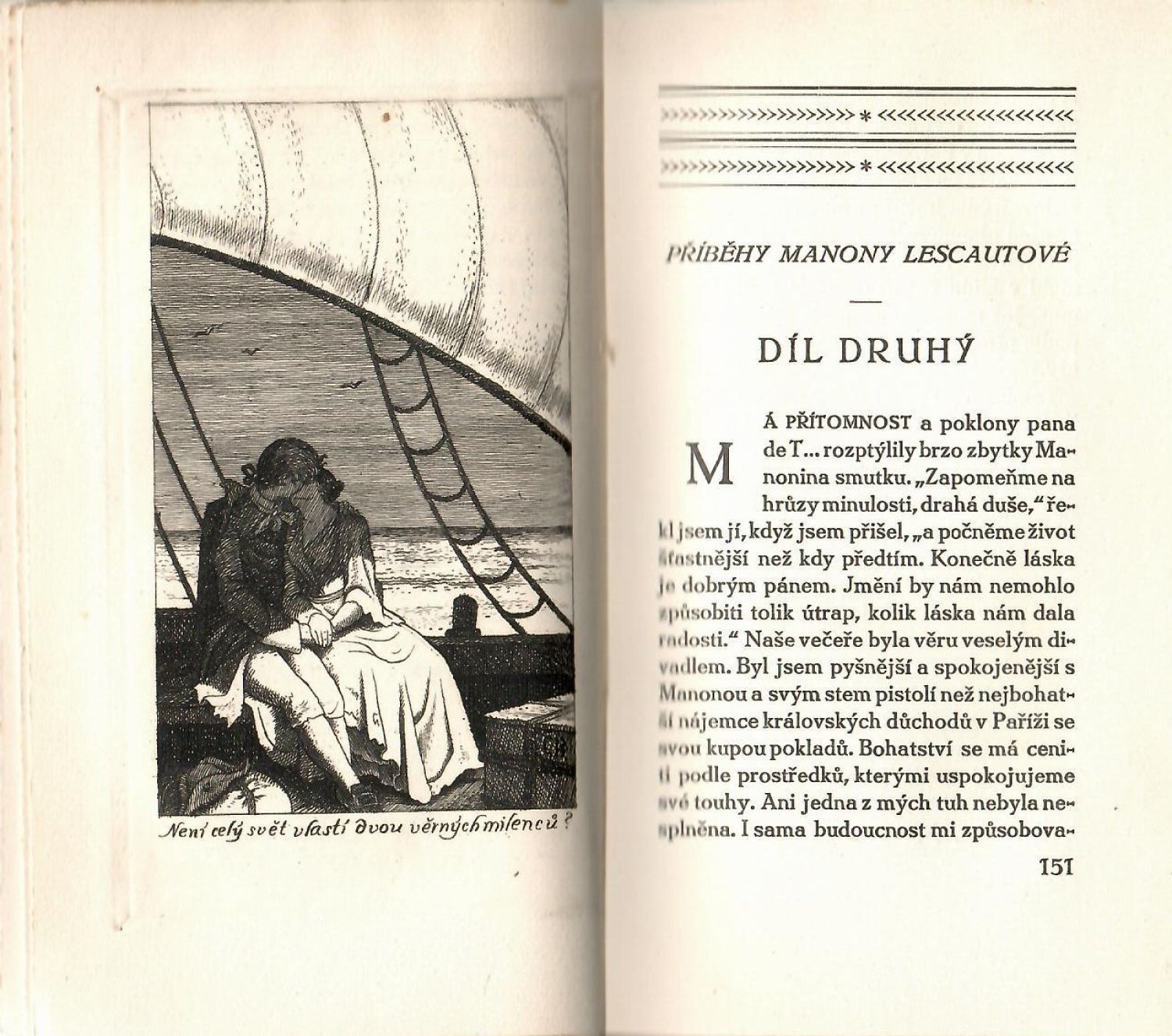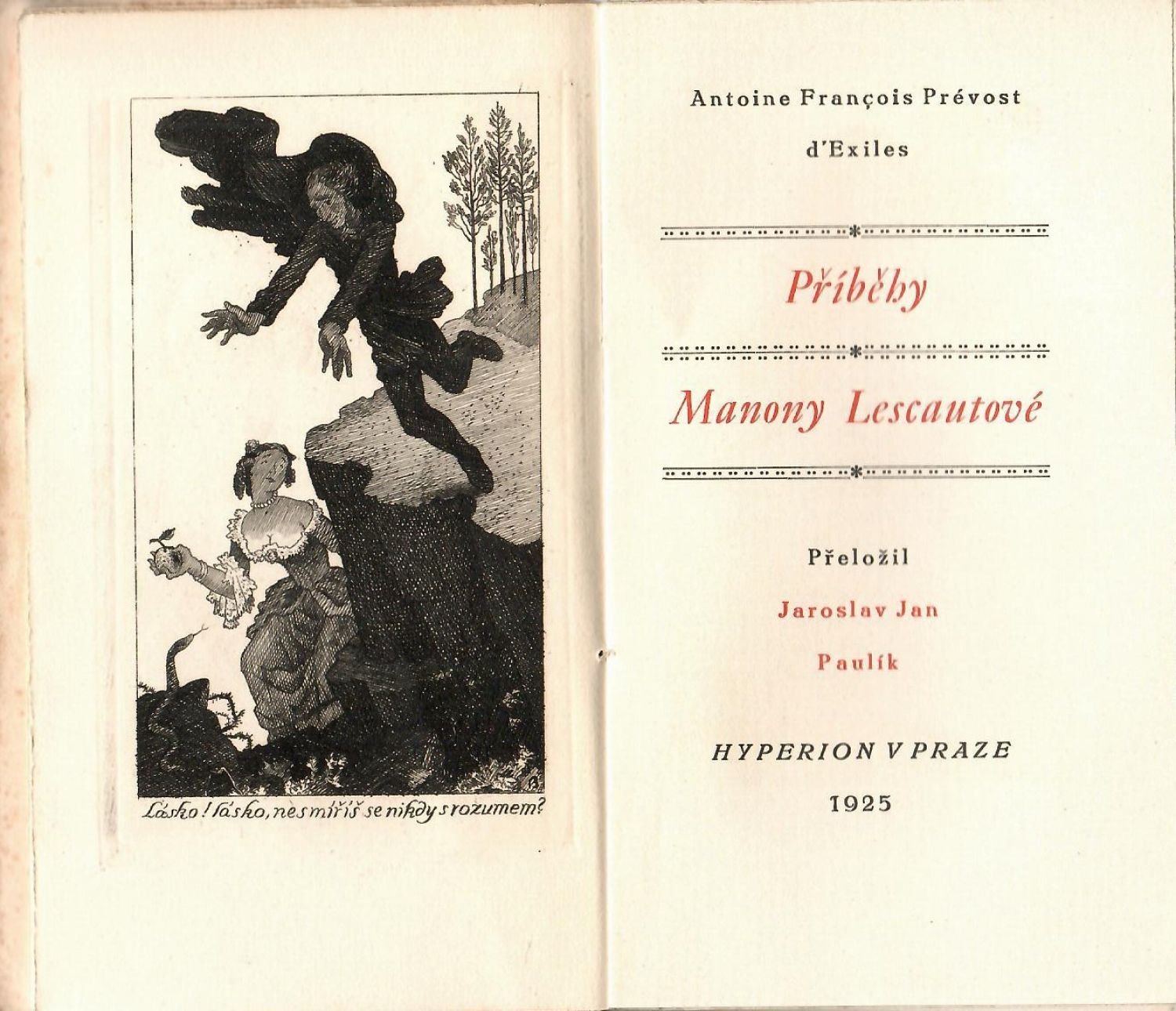 Desky s četnými světle hnědými skvrnkami. V knize dva původní lepty Cyrila Boudy. Listy neoříznuty.