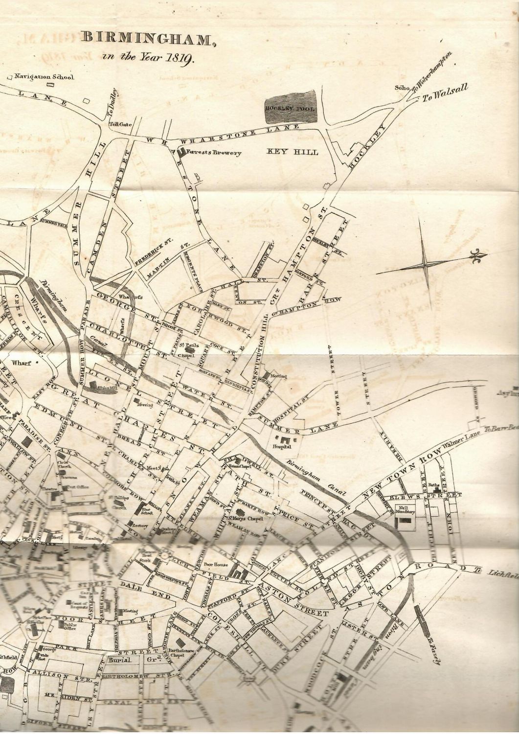 Ve front. rozkládací plán města Birminghamu, koncová viněta, knižní blok zčásti nerozřezaný.