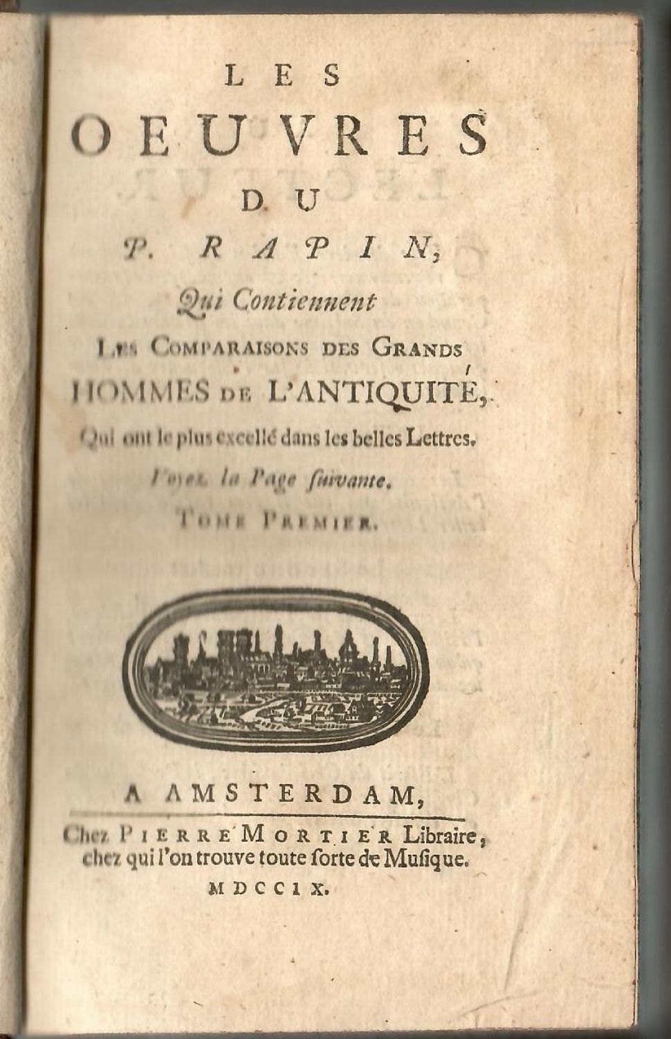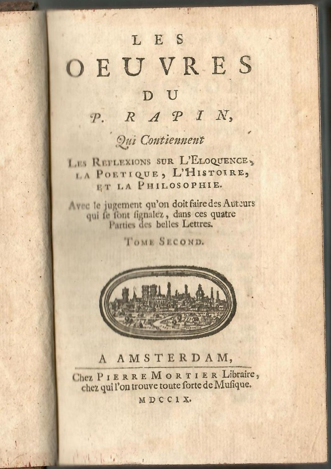 LES OEUVRES DU P: RAPIN, Qui Contiennent...... Tom I., II.