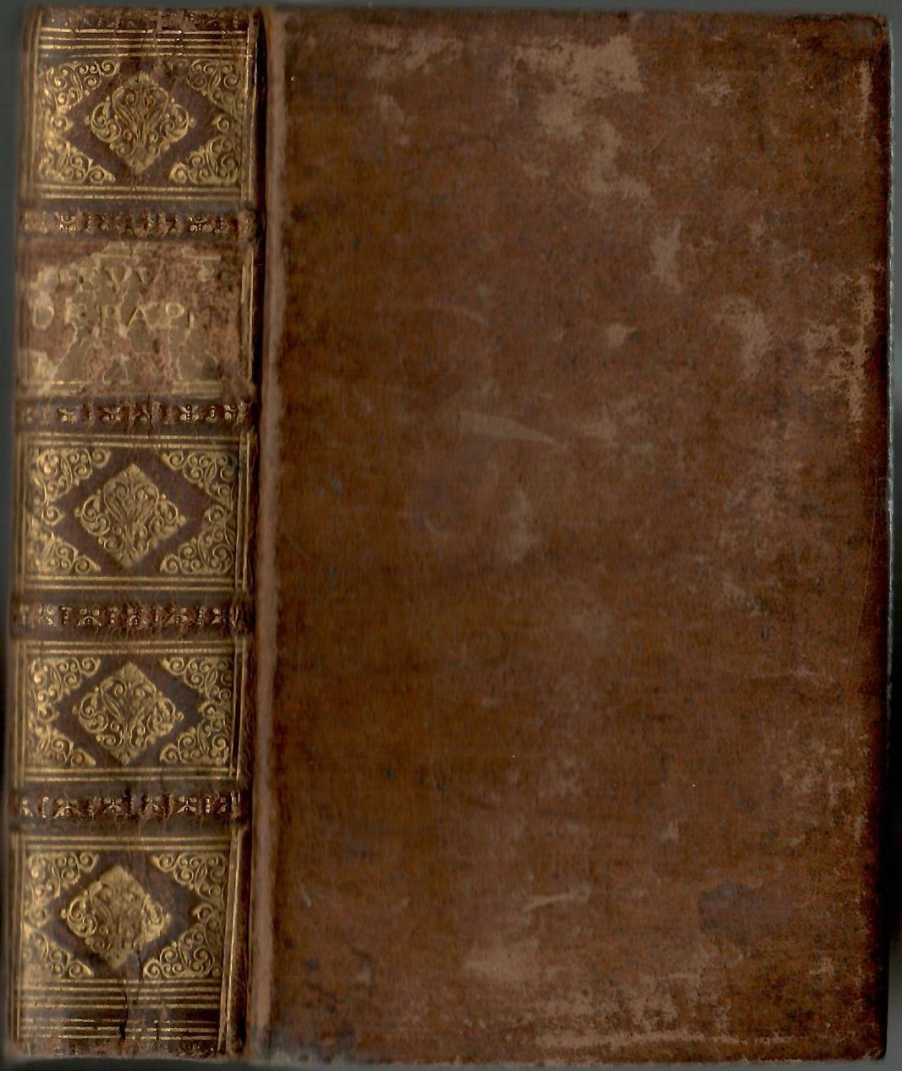 Dobová vazba z hnědé hlazené hověziny, ve hřbetu 4 vazy, ve druhém poli tlačený a zlacený název, v ostatních polích ve dvojitém jednoduchém rámečku tlačený a zlacený ornament rostlinného charakteru stříkané ořízky. Vazba ohmataná a místy lehce odřená, zlacení titulu ve hřbetu zčásti setřené.