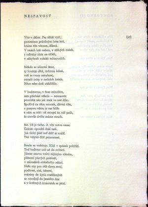 Jeden z 800 vydaných exemplářů tištěných na ruční papír písmem Garamond (Monotype), vytiskla Střední průmyslová škola grafická v Praze, typograficky upravil Bohuslav Blažej. - Původní papírová obálka s chlopní, ve které je volně vložený složený knižní blok, původní ochranné kartonové pouzdro s chlopní. - Knihu vydal PNP pro Spolek českých bibliofilů v Praze jako prémii na rok 1981.
