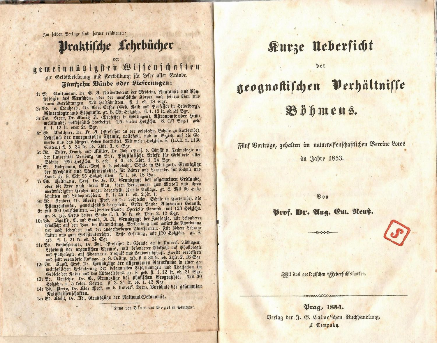 Kurze Uebersicht der geognostischen Verhältnisse Böhmens. Fünf Vorträge, gehalten im naturwissenschaftlichen Vereine Lotos im Jahre 1853.
