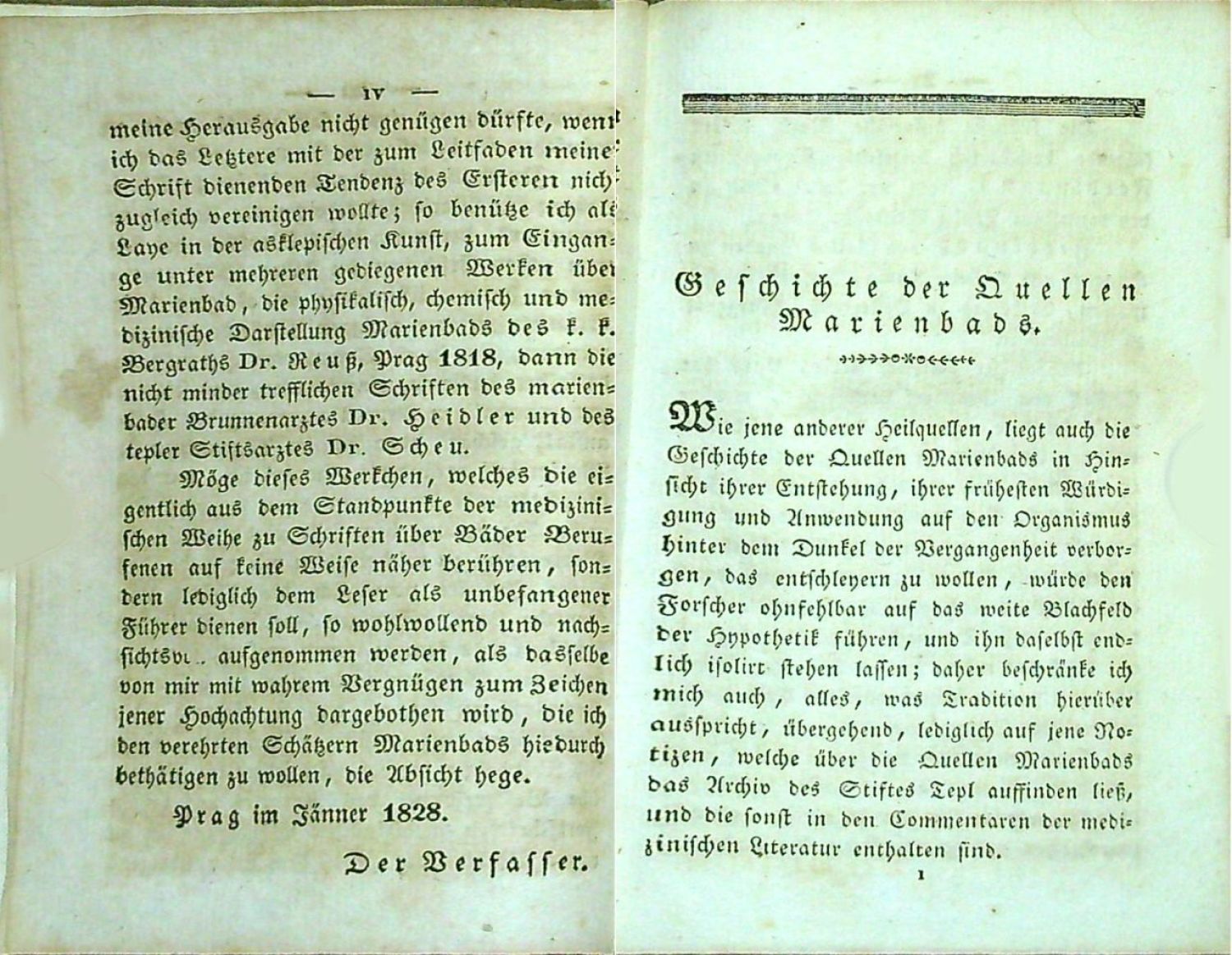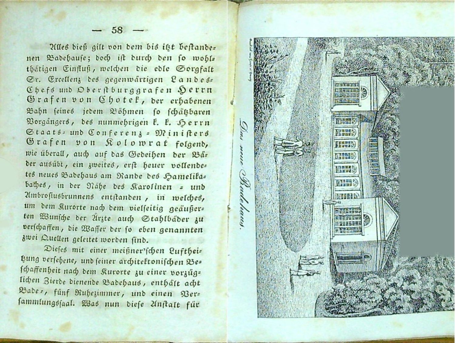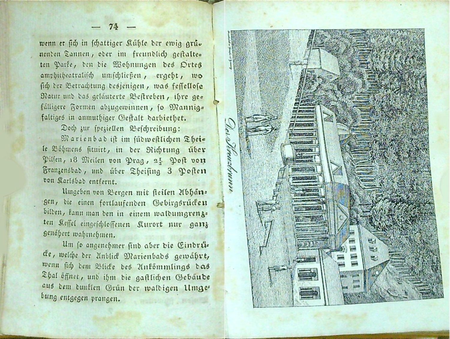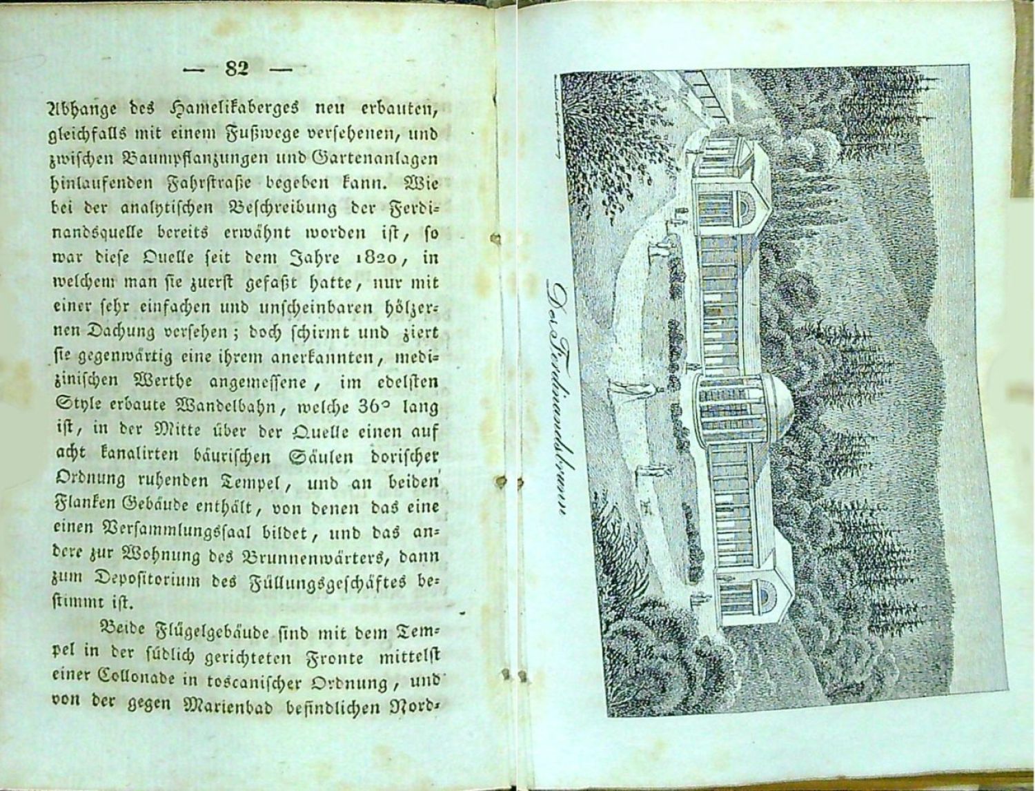 Na obou deskách vazby lept. ilustrace ("Der Ambrosiusbrunne" a "Der Carolinenbrunne", na hřbetě tištěný titul; vazba ohmataná, před. deska ušpiněná, hřbet odřený, papír místy s hnědými skvrnkami, přílohy v dobrém stavu.