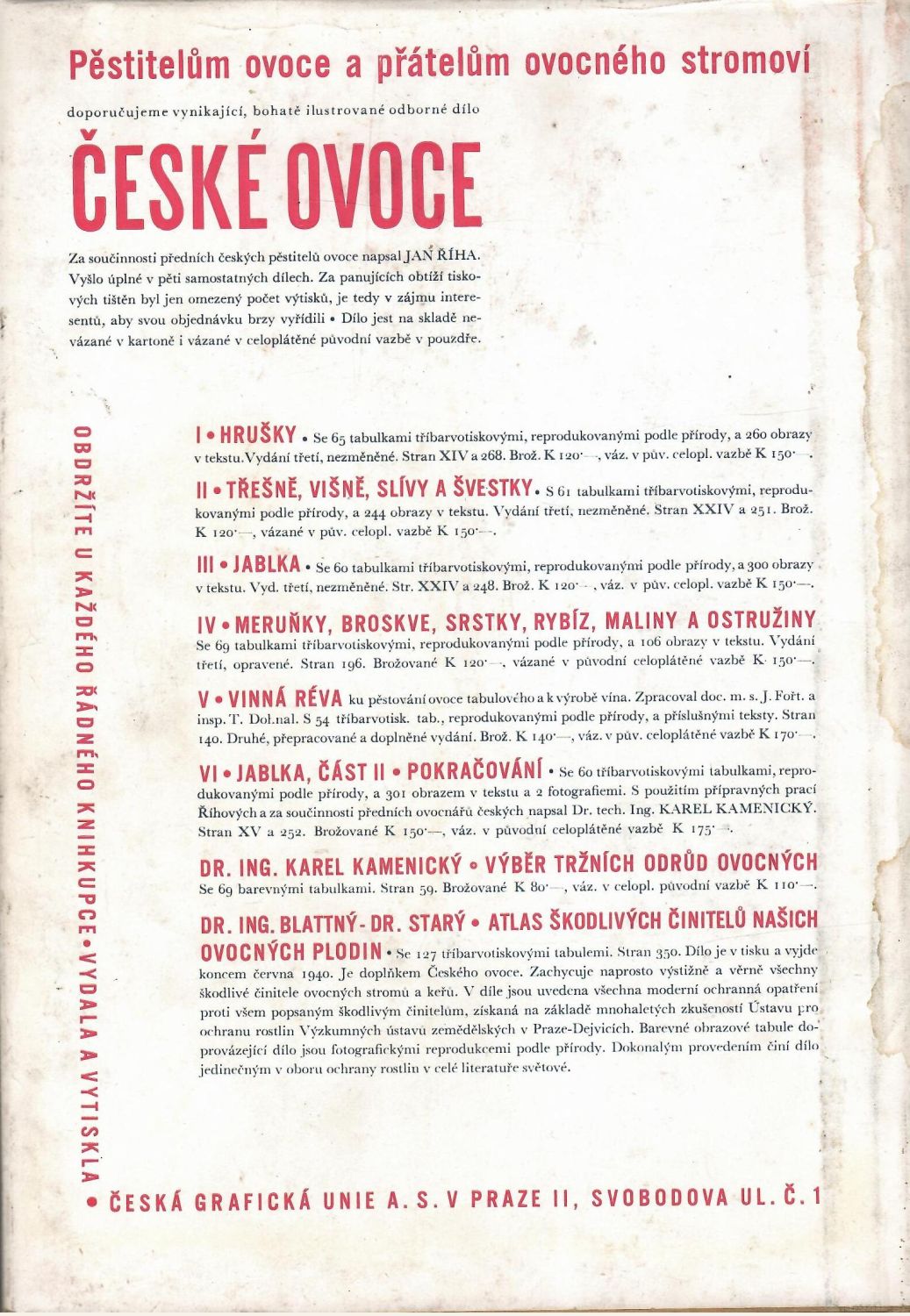Papírový obal ošoupaný, na několika místech natržený. Ve hřbetu fleky od tekutiny. Předsádkový papír v pravém horním rohu přeložen.