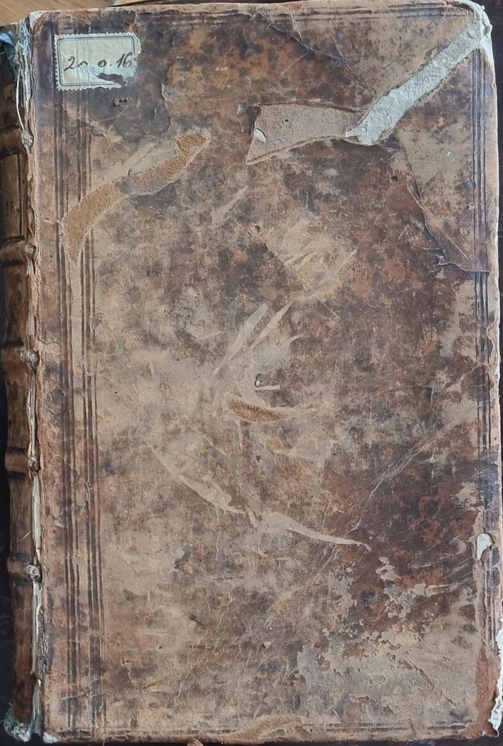Dobová vazba z hnědé hověziny, barvené ořízky, ve hřbetu 5 vazů, ve druhém poli původní kožený štítek s názvem. Vazba ohmataná a odřená, místy chybí kožený pokryv, přední deska zčásti uvolněná od hřbetu, naražené rohy, při horním i spodním okraji hřbetu chybí kousky kůže. Na titulním listu staré razítko "Rerenorendi Zárda Budapest-Belvárosi ...".