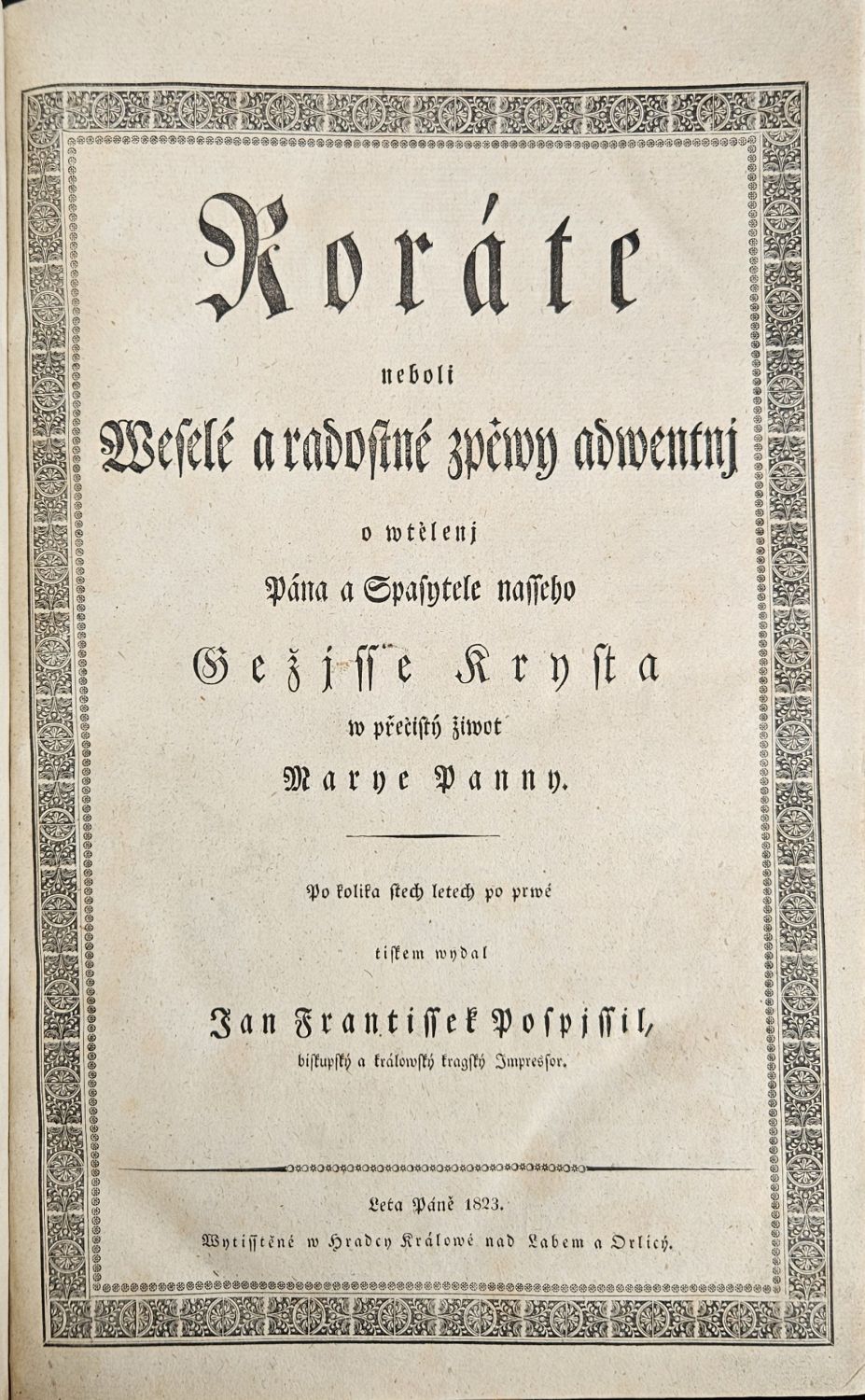 Roráte neboli Weselé a radostné zpěwy adwentnj o wtělenj Pána a Spasytele nasseho Gežjsse Krysta w přečistý žiwot Marye Panny. Po kolika stech letech po prwé tiskem wydal ...