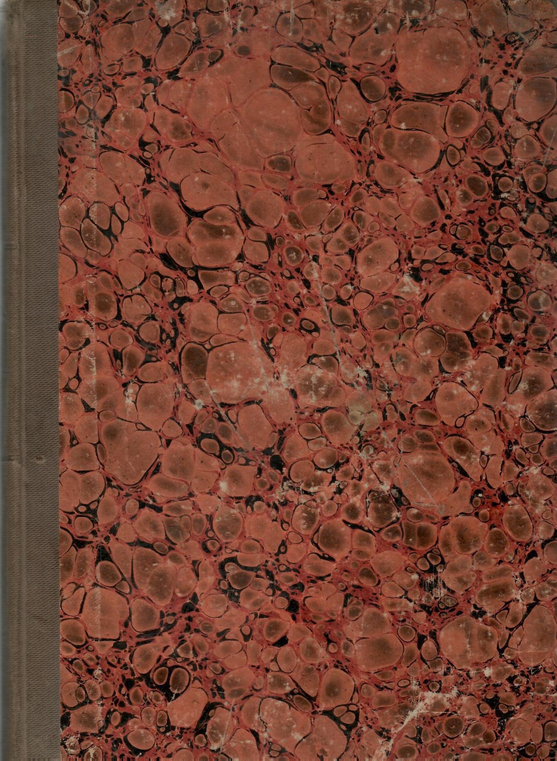 Kartonové desky potažené mramorovaným papírem, plátěný hřbet a nárožnice. Plátno při spodním okraji hřbetu natržené, desky místy lehce odřené, naražené rohy. Chybí strany 65-68. Strana 65 kaligraficky dopsaná a vložená volně do knižního bloku, strana 68 kaligraficky dopsaná a svázána v knižním bloku, strany 66-67 v knižním bloku svázané a předpřipravené na dopsání.