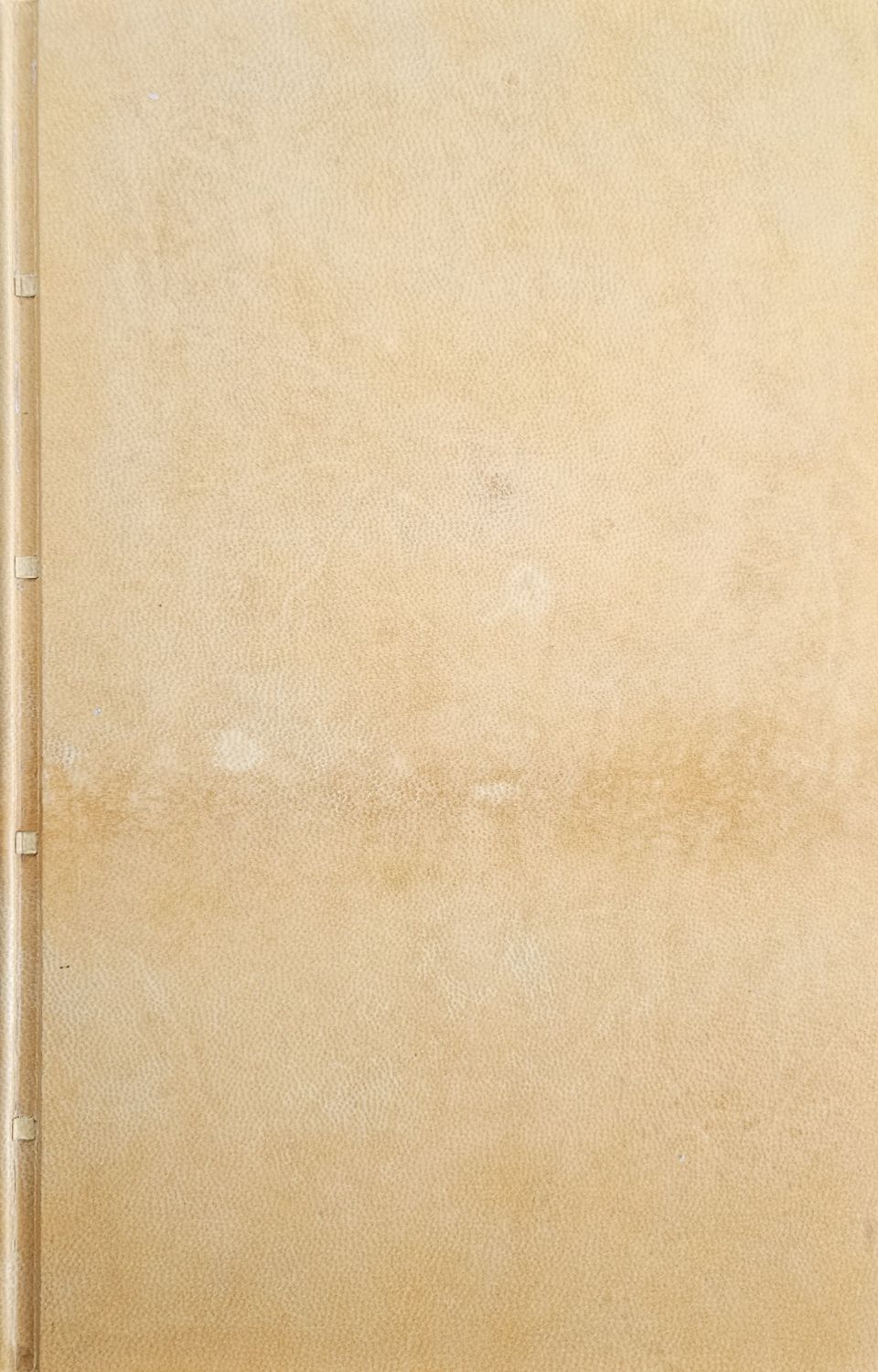Nová pergamenová vazba s kantnami, ochranné dvoudílné kartonové pouzdro (spodní a horní okraj potažený vínově červenou kůží) potažené škrobovým papírem (vazba i pouzdro jsou dílem ateliéru Krupka). Papír místy lehce zahnědlý, na několika listech jsou při spodním vnějším okraji světlé skvrny od vlhkosti, na tit. listu chybí malý kousek papíru (cca 0,2 až 0,5 x 2 cm).
