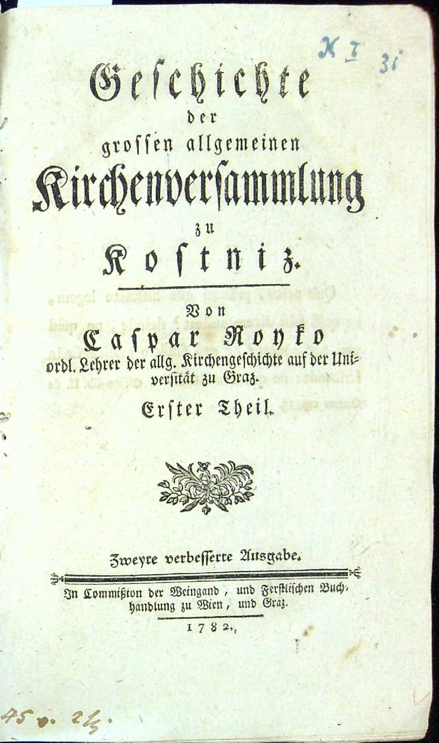 Geschichte der grossen allgemeinen Kirchenversammlung zu Kostniz. Erster un Zweyter Theil (ze čtyř dílů)