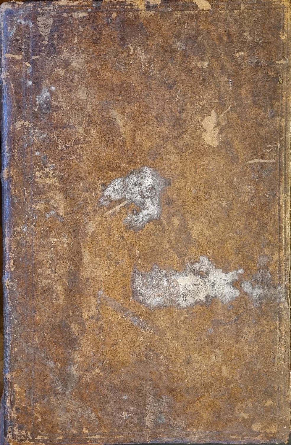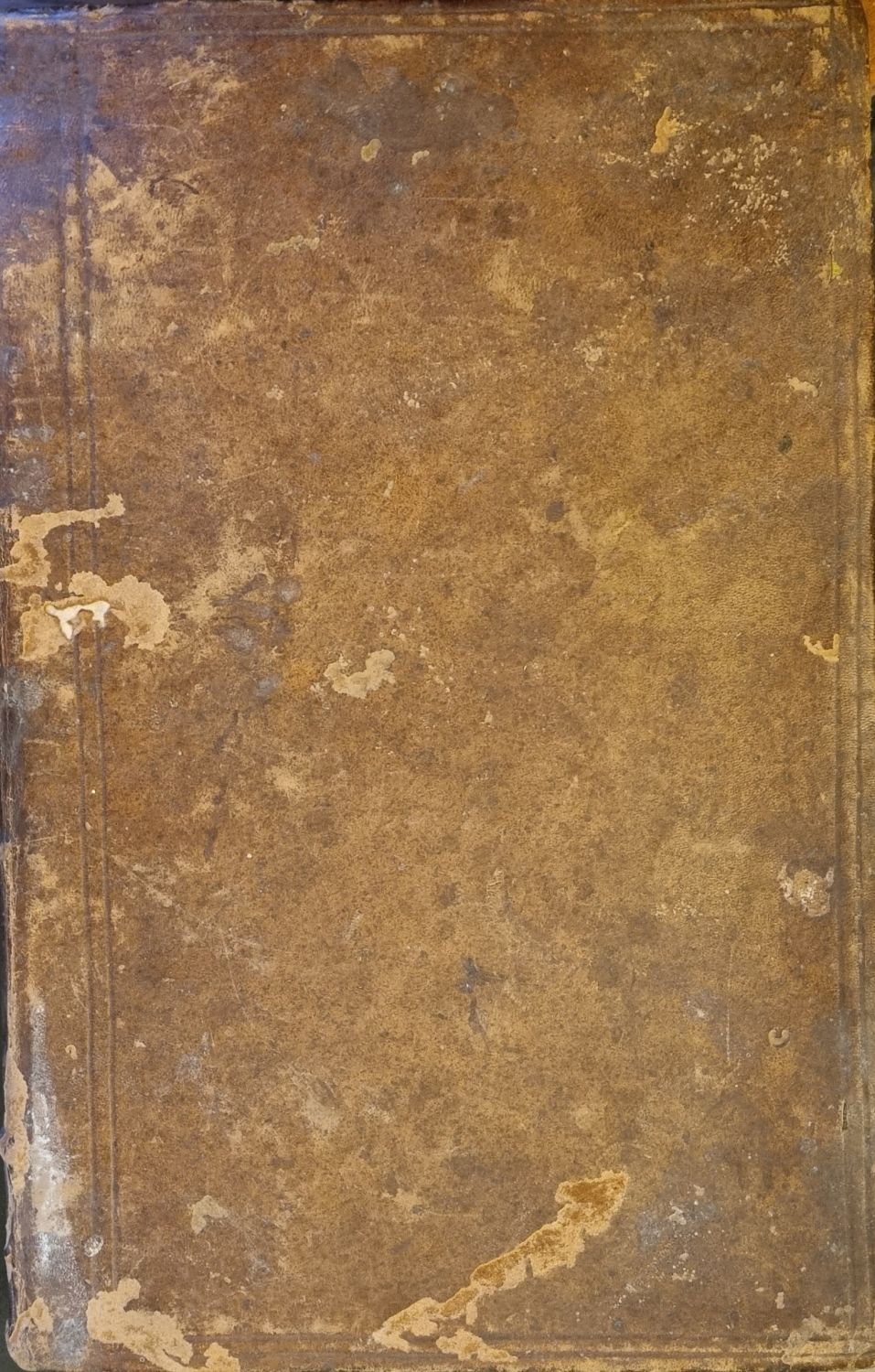 Dobová kožená vazba, ohmataná a místy odřená. Titulní list lehce zašpiněný, na posledním listu světle hnědá skvrna.