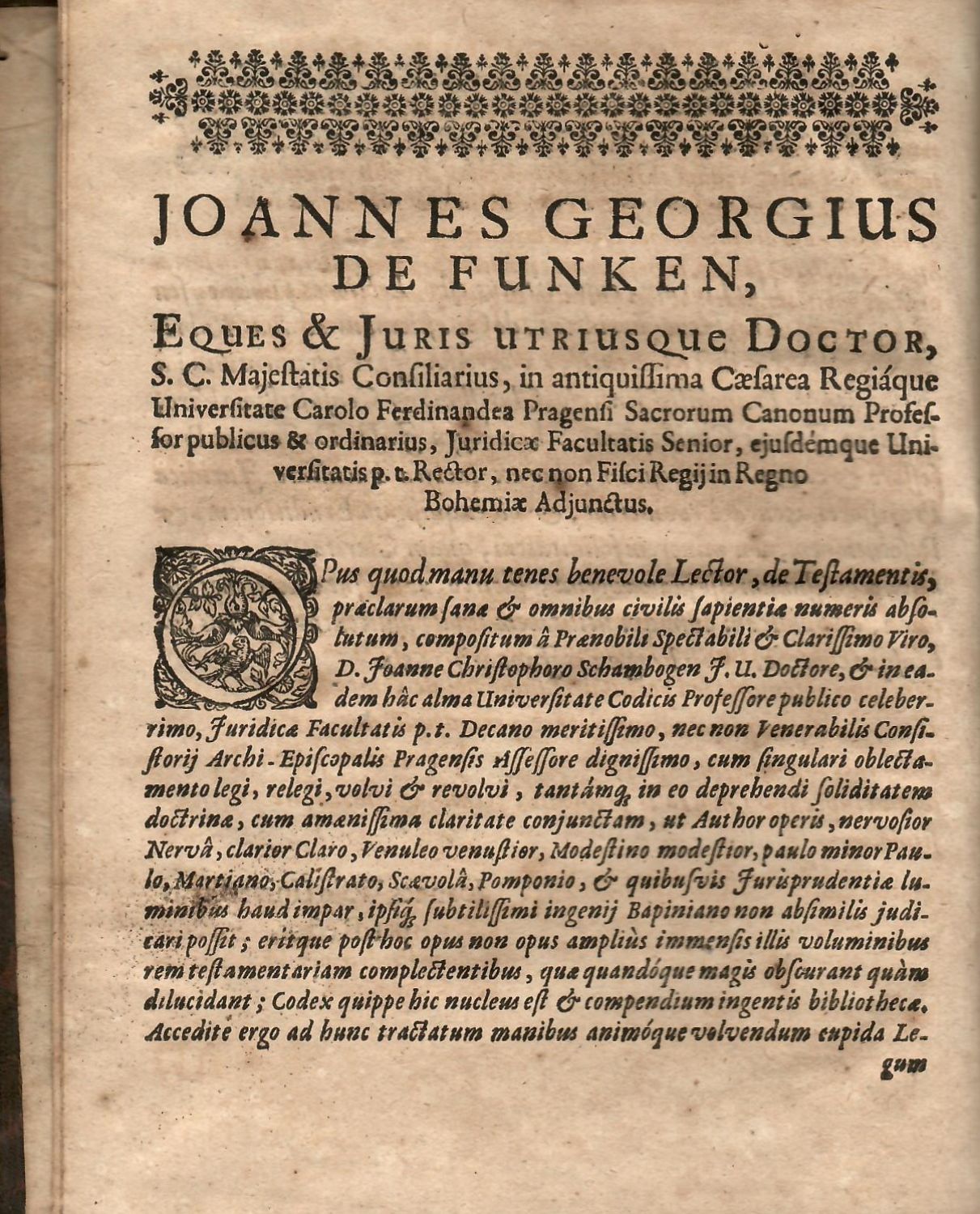 LECTIONES PUBLICAE SEU TRACTATUS JURIDICUS, In quo QUAESTIONES AD DUAS RUBRICAS Qui testam: facere possunt, & Quemadmodum testamenta fiant, tam ex jure civili, quam canonico spectantes, scholastico more resolvuntur. Composium & in UNIVERSITATIS CAROLO-FERDINANDEAE. PRAGENSIS Magnae Aulae Carolinae, Auditorio Juridico dictatus.