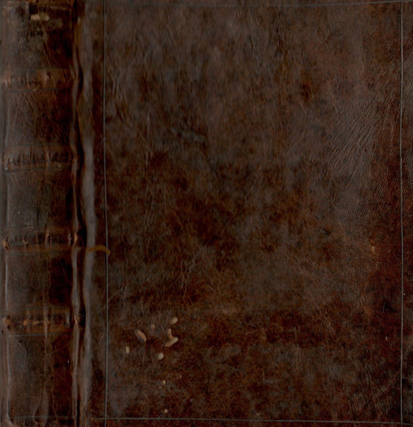Dobová vazba z temně hnědé hověziny, ve hřbetu 4 vazy, barvené ořízky. Na tit. listu začerněné perem psané proven. údaje, papír místy lehce zahnědlý.
