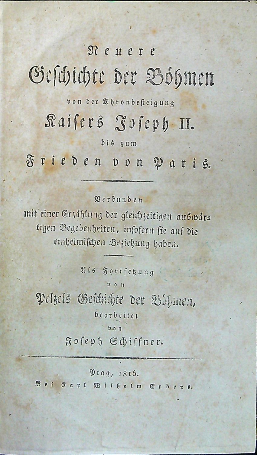 Neuere Geschichte der Böhmen von der Thronbesteigung Kaisers Joseph II. bis zum Frieden von Paris. Verbunden mit einer Erzählung der gleichzeitigen auswärtigen Begebenheiten, insofern sie auf die einheimischen Beziehung haben. Als Fortsetzung von Pelzels Geschichte der Böhmen, bearbeitet von ....