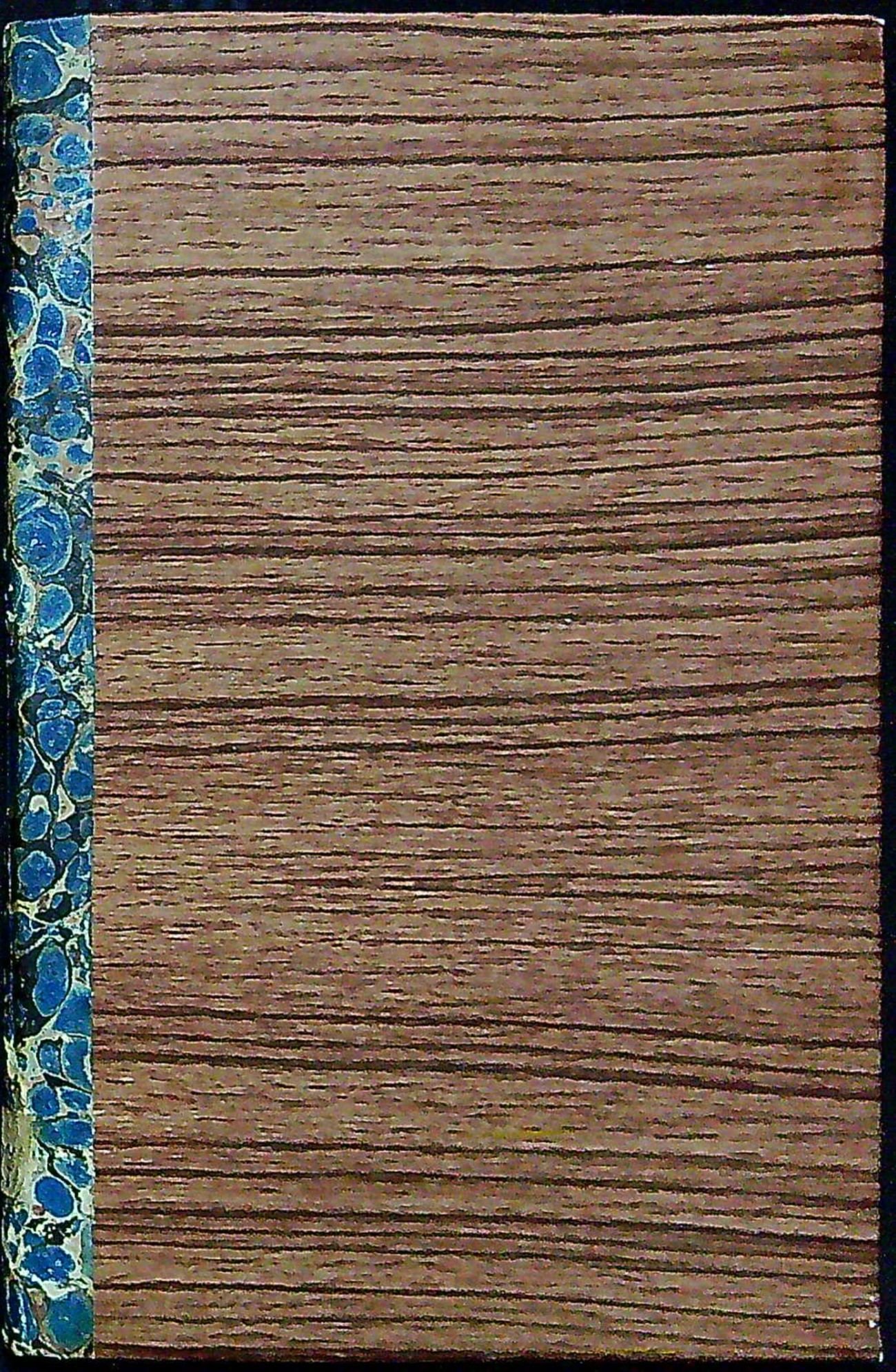 Kartonové desky potažené olejovým papírem, přes hřbet přelepený pruh mramorovaného papíru z 19. století, titulní list podél vnitřního okraje podlepený (chybí část rámečku), folio a2 podél vnitřního okraje podlepené a též folio poslední (bez zásahu do textu). Na přední předsádce ex libris významného trutnovského sběratele Jaroslava Jiráska.