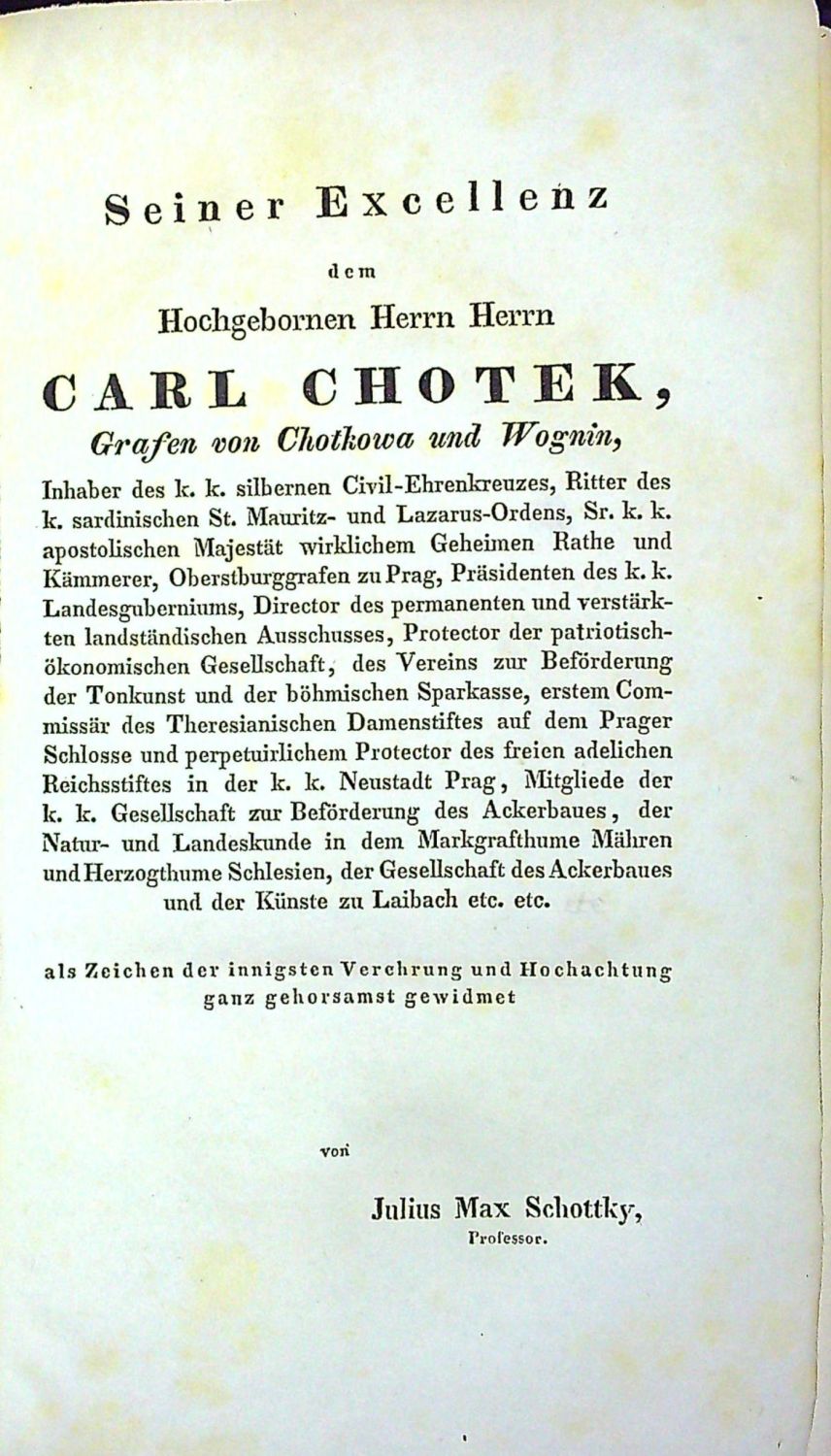 Julius Max Schottky (1794 - 1849), významný německý topograf, v letech 1816 až 1831 žil v Praze, poté v Mnichově a jeho čas se naplnil v Trevíru, autor několika spisů z oblasti české historie (Carolinische Zeit, 1830; Ueber Wallensteins Privatleben, 1833; Burg Karlstein,1832).