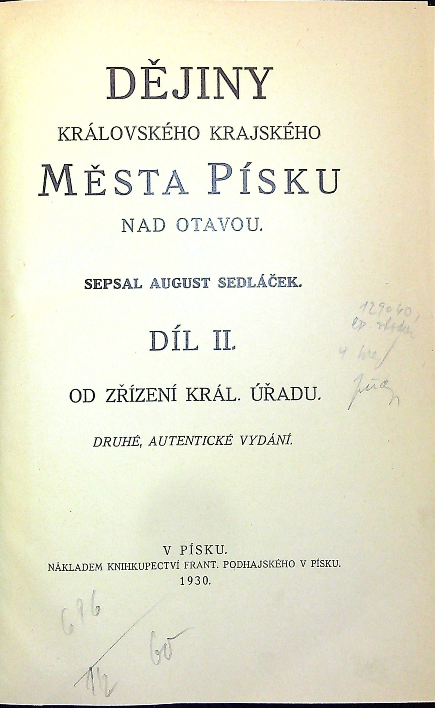 Dějiny královského krajského města Písku nad Otavou (Díl I., II. - komplet)