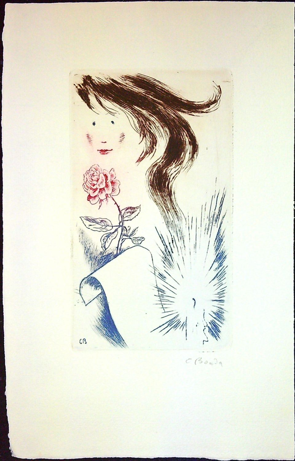 Tištěno na ručním papíře jako pamětní tisk k poctě osmdesátin Jaroslava Seiferta a Cyrila Boudy pro účastníky valného shromáždění Spolku českých bibliofilů v PNP v Praze 11. dubna 1981. Na rubu předního listu výše zmíněný údaj, pod ním modrým perem podpis Seifertův, na líci druhého listu Seifertova báseň, suchá jehla Boudova volně vložena.